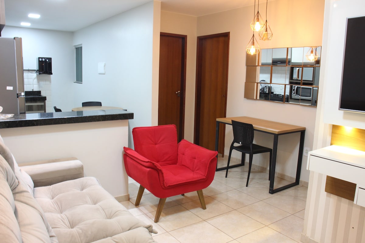Nuestro apartamento fue diseñado en los detalles más pequeños para ofrecer una experiencia única, acogedora e inolvidable. De nueva construcción, combina comodidad, practicidad y mucho encanto en un espacio moderno y acogedor. Tiene una cama súper cómoda, aire acondicionado, Wi-Fi y una cocina equipada. La sala de estar es acogedora, con un televisor inteligente y un sofá perfecto. Será un placer darte la bienvenida. Nuestro espacio está preparado para que tu viaje sea más ligero, agradable y especial.