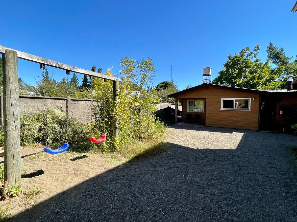 Relájate con toda la familia en este tranquilo lugar en una cómoda y agradable cabaña que proveé habitación doble baño privado, Minibar, agua caliente, zona de cocina, escritorio, comedor auxiliar, Aire acondicionado, calefacción, WiFi. Sin restricción para mascotas ni fumadores. La cabaña esta emplazada en una parcela de media hectárea en Zona Urbana, cuyo acceso individual favorece la privacidad de los huéspedes con su entorno interactuando con la Naturaleza, a minutos del centro.
