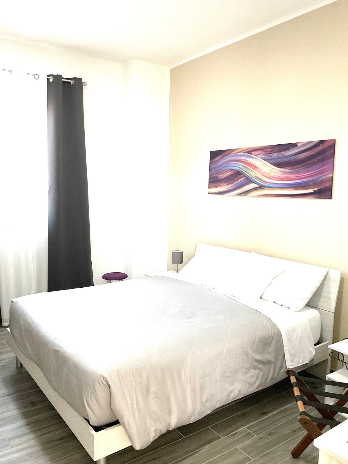 Benvenuti a Saluzzo! Rifugio moderno e raffinato, ideale per chi cerca relax ai piedi del Monviso. Ambienti luminosi con cucina attrezzata, zona pranzo elegante, divano letto matrimoniale e camera con bagno privato. Due bagni moderni e dettagli di design assicurano comfort e praticità. Wi-Fi veloce, aria condizionata e TV completano i servizi. A pochi passi dal centro storico, tra vicoli medievali, botteghe e ristoranti tipici.