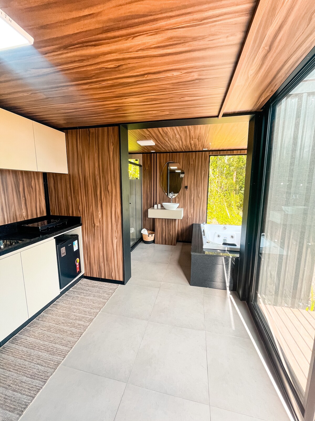 Este pequeño rincón es ideal para relajarse, a 100 km de Porto Alegre, a 15 km de Carlos Barbosa y a 35 km de Bento Gonçalves. Se trata de una casa contenedor con 2 dormitorios (con 2 camas dobles), lavadero, garaje, un patio pequeño pero acogedor, 1 baño, 1 cocina amueblada y 1 sala de estar con un gran ventanal que deja entrar la luz natural, además de una terraza de madera ideal para relajarse, tumbarse en la hamaca y disfrutar de una copa de vino. Se ubica discretamente en un vecindario muy tranquilo.