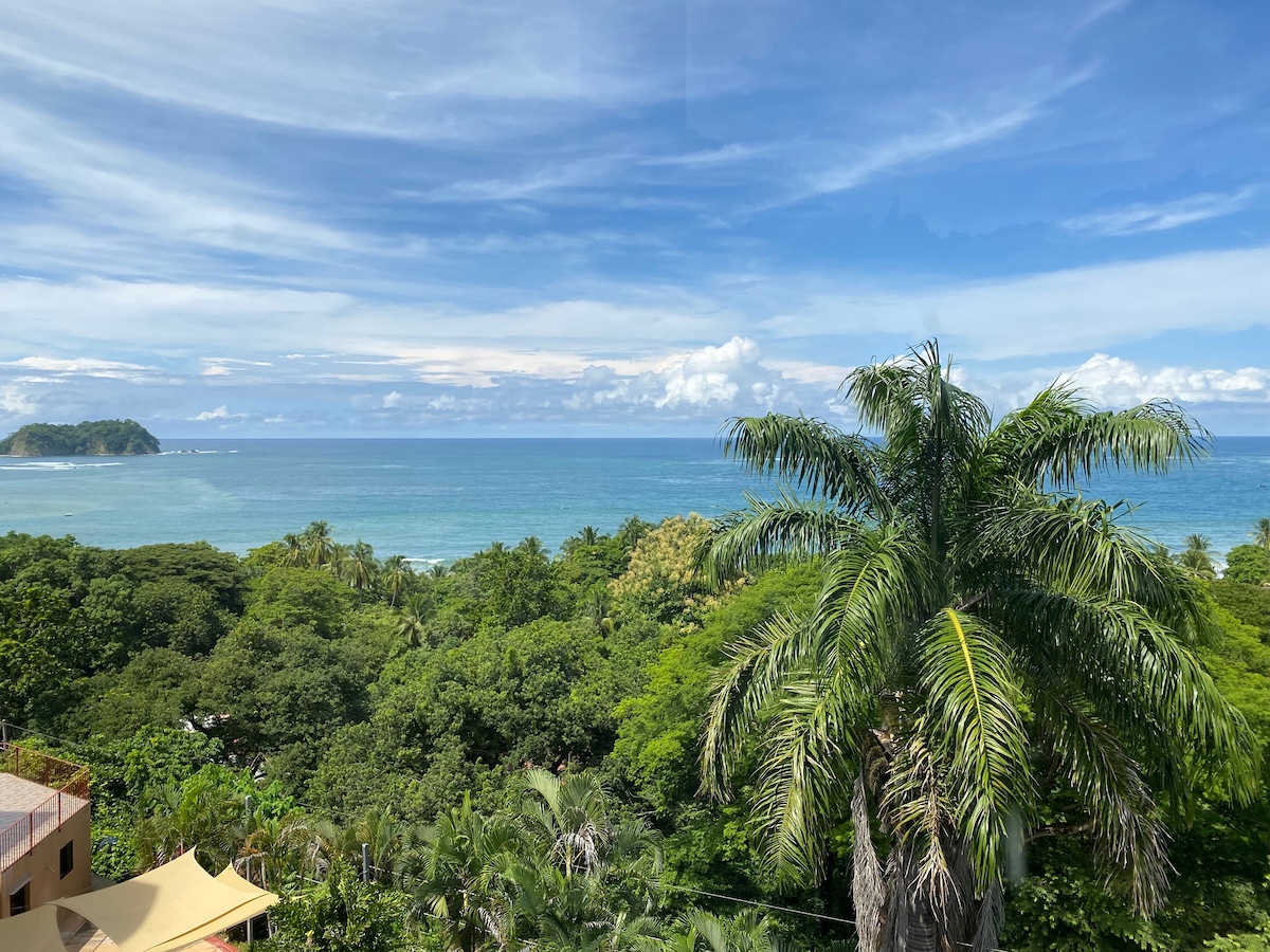 Experience the most beautiful ocean views of Playa Sámara and the island of Chorra from your 40 square meter terrace. Our modern and lovingly furnished apartment is located on a small hill above the town of Sámara on the third floor. The beautiful beach and the village with its many excellent (beach) restaurants, grocery stores, shops and banks etc. are within walking distance (approx. 5 minutes). A community pool is available in the complex.