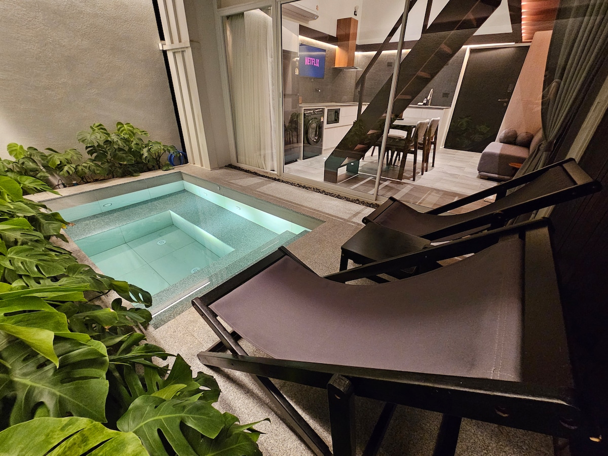 A hidden loft with your own private plunge pool, a rare escape in Bangkok. Surrounded by greenery and soft lighting, The layout offers a unique sense of openness while still feeling intimate and cozy. Located just 450 meters from BTS Punnawithi, you’ll enjoy easy access to cafés, local food spots, and the city’s main attractions while still coming home to a peaceful, hidden retreat. Perfect for couples, friends, or solo travelers looking for something more special than a standard city stay. 🌴