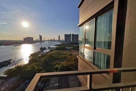Retiro ✨ junto al río: comodidad y comodidad ✨ Alójate en un departamento junto al río de 2 dormitorios y 1 baño con impresionantes vistas y comodidades modernas. ✅ Wifi rápido (300/300 Mbps) Tienda de comestibles ✅ las 24 horas, los 7 días de la semana ✅ Piscina, sauna y gimnasio (50 THB por uso) ✅ Estacionamiento seguro (se requiere preaviso) A 🚆 1 minuto a pie de BRT Pariwat y a 15 minutos en auto de BTS Chong Nonsi 📍 Cerca de las cafeterías y lugares de arte de Charoenkrung 📍 Cerca de Asiatique: compras junto al río y vida nocturna ¡Reserva ahora y disfruta de Bangkok! 🌊🏙️