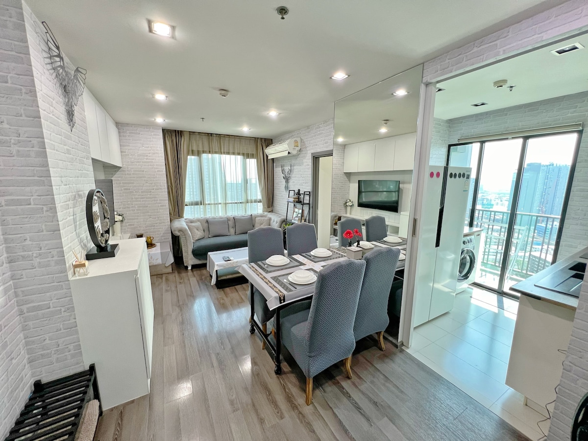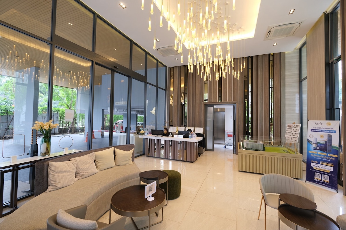 ¡Disfruta de un apartamento de gran altura como ningún otro! ¡Equipado con un increíble gimnasio y piscina infinita en la azotea! ¡Apartamento limpio y brillante con wifi de alta velocidad y varias películas de Netflix gratis! Con tiendas abiertas las 24 horas y puestos de comida que sirven comidas suntuosas hasta la medianoche, nunca pasarás hambre. ¡La estación de tren BTS se encuentra a solo 50 metros de distancia! 欢迎您来¡本公寓提供舒适的房间,房间里设备齐全 厕所,网络,软床, 位于离BTS Udomsuk轻轨站很近, BTS Udom Suk那里有菜市场,街边有卖很多的食物, 就1分钟走路到那儿, 非常地方便.