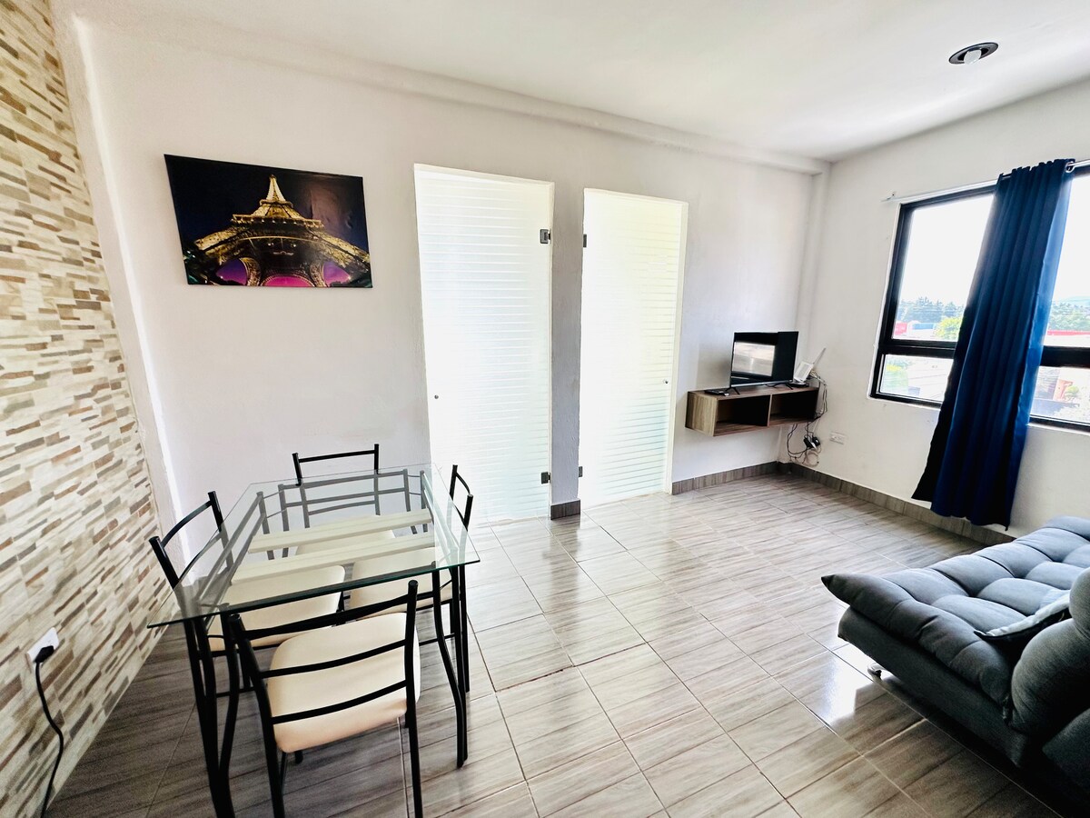 Hermoso departamento con terraza privada, internet alta velocidad; seguridad 24/7. A pie encuentras restaurantes, súper, lavandería, gym y coworking. A solo 2 min caminando de la UDLAP; cerca de la zona arqueológica, y el bello centro histórico de Cholula. A 5 min en coche están Explanada Puebla y Foro Cholula. Ubicado sobre la Recta a Cholula, con acceso directo al Centro Histórico de Puebla. Ideal para estancias largas o cortas. Ofrecemos facturación y descuentos por estadías largas.