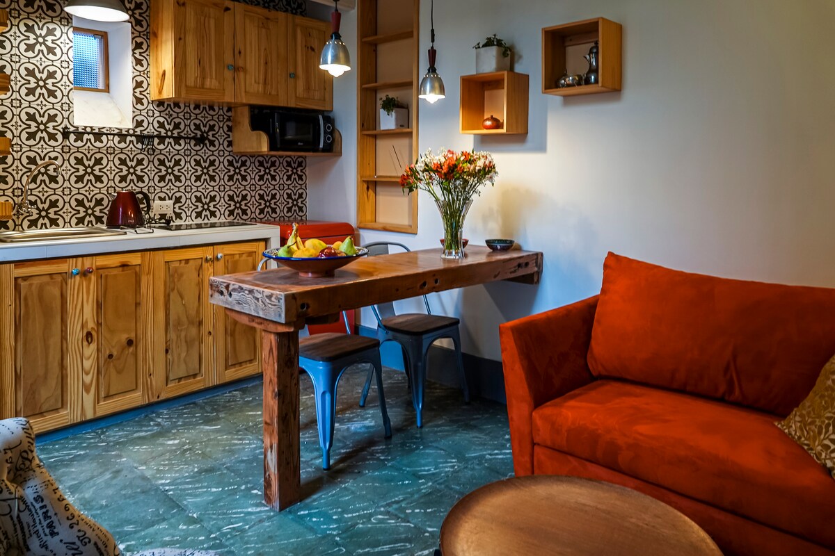 Acogedor y rústico loft ubicado en una tradicional quinta en la zona más céntrica de Miraflores. Situado en segundo piso (escaleras), a dos cuadras y media del malecón y de Larcomar. En sus 40m2 posee una cama queen, una sofá seccional, closet para ropa, kitchenet con lo básico, baño completo y pequeña biblioteca. Amplio ventanal con vista a los jardines de la quinta.