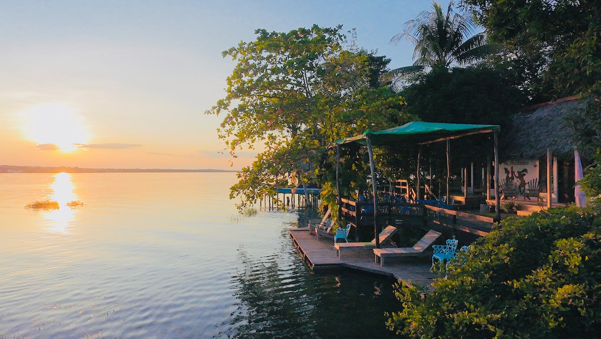 Somos una familia petenera ansiosa de recibirlos para mostrarles la belleza de nuestra tierra en una casa del bosque ubicada a 10 minutos de la Isla de Flores por medio acuático, en la península de Tayasal. Disfruta de momentos de paz y conexión con la naturaleza junto a tu familia con vistas impresionantes al Lago Petén Itzá,. Vive la magia de los atardeceres más hermosos y de noches estrelladas, donde la luna brilla con toda su esplendor. ¡El lugar perfecto para crear recuerdos inolvidables!