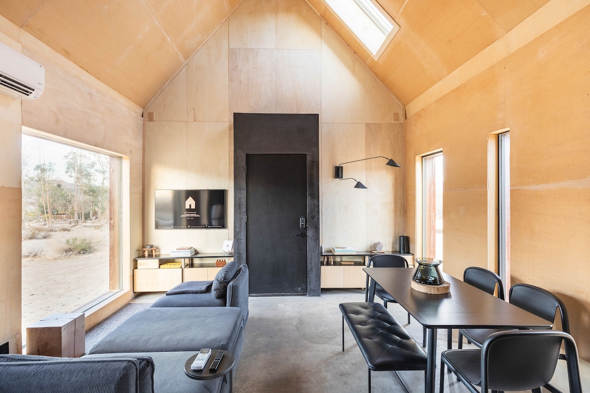 ¡Ambiente del desierto con un toque especial! Una sala de estar moderna de mediados de siglo, una cocina abierta totalmente equipada y un dormitorio de ensueño con un rincón de tocador, un baño luminoso con ducha de lluvia, un divertido salón en el porche para ver nuestros magníficos amaneceres. Pero la magia realmente comienza afuera. Cena a la parrilla y disfruta bajo la pérgola, sumérgete en la bañera vintage bajo los árboles o disfruta de la puesta de sol desde nuestro «barco» del desierto, ¡sí, un verdadero barco se convirtió en sofá cama! Estarás rodeado de árboles de Josué y un cielo lleno de estrellas.