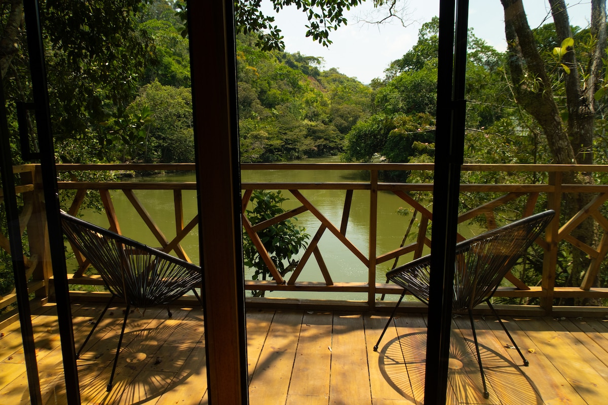 Cabaña de lujo para 2 hasta 4 personas con desayuno incluido. La cabaña cuenta con acceso directo al rio, avistamiento de nutrias y aves. Además, podrás hacer actividades como cabalgatas, pesca y caminatas. Estamos ubicados a 15 minutos del parque de San Carlos justo a borde de carretera. También ofrecemos servicio de restaurante. La cabaña cuenta con 2 pisos, cocina, baño privado, balcón con vista al rio, escaleras para acceso al charco, minibar y espacios de descanso.