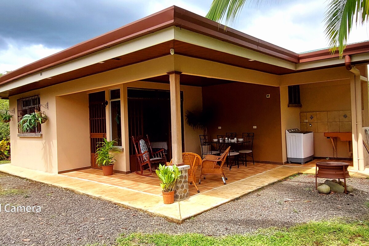 Esta villa es la mejor opción para ver el Volcán Arenal. A unos 3-5 minutos del centro de la Fortuna, la casa se encuentra en un lugar tranquilo y rodeado de naturaleza. Los visitantes disfrutaran de la vida de barrio, con vecinos y sus animales domesticos. La propiedad es espaciosa, con un patio increíble para relajar y pasar momentos inolvidables con tu familia y amigos. Cuenta con parqueo para 5 autos, A/C en cada habitación. Es segura y bien equipada para unas vacaciones inigualables.