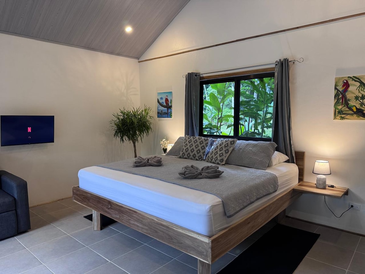 Relájate en esta escapada única y tranquila. Villa Colibrí es el espacio ideal para desconectarte del ritmo agitado de la ciudad y conectarte contigo mismo y la naturaleza. Rodeada por un exuberante jardín tropical. La villa cuenta con baño privado completo, cocineta equipada, terraza techada y al aire libre. El dormitorio te brinda la comodidad de una cama Queen, SmartTV y ventilador portátil. Complementan ropa de cama y toallas de baño.