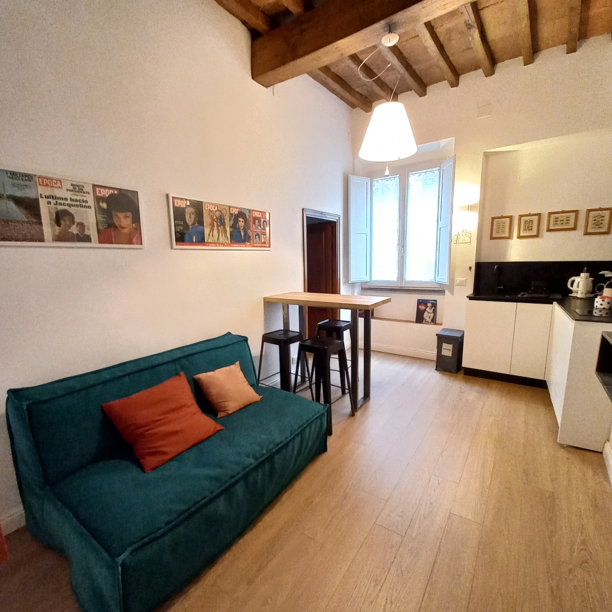 Apartamento exclusivo y refinado en el segundo piso de un edificio histórico del siglo XVI, en el corazón de Florencia. Con vigas expuestas, pisos de parquet y muebles florentinos hechos a mano, combina el encanto histórico con el diseño moderno, creando un ambiente cálido y acogedor. Ideal para parejas, amigos o familias, ofrece una ubicación céntrica a pocos pasos de todas las atracciones principales, desde museos hasta plazas históricas.