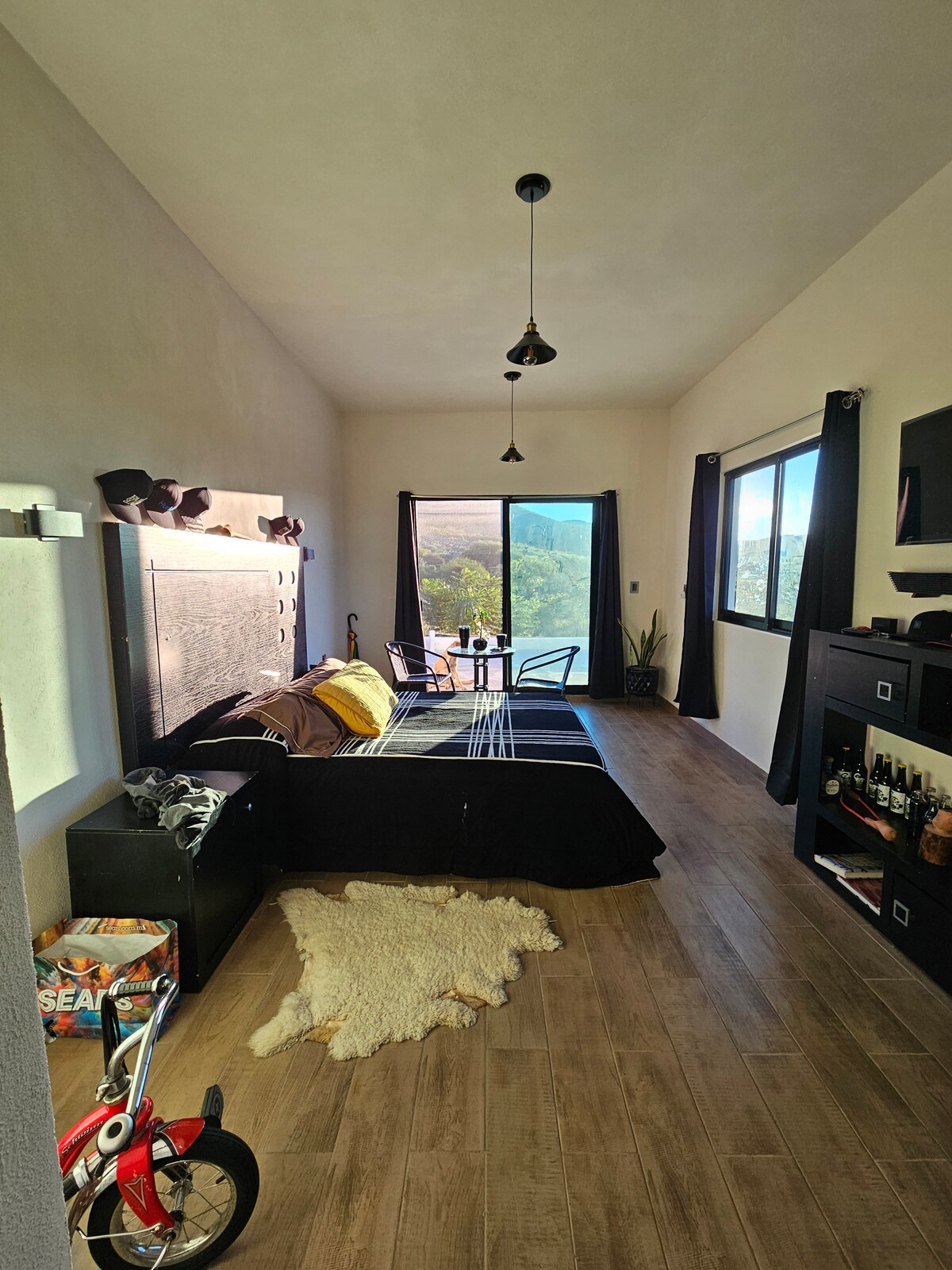 Nuestra cabaña es super acogedora, tiene una vista espectacular de la sierra de Santa Rosa, en el corazón de este tradicional pueblito, a tan solo unos metros caminando del Restaurant de La Sierra, las tiendas y principalmente la naturaleza. Además cuenta con un amplio jardín con asador y lugares para relajarte. Cuenta con chimenea y todo lo básico para una estancia placentera, perfecta para reconectar con la naturaleza o escapar de la ciudad.