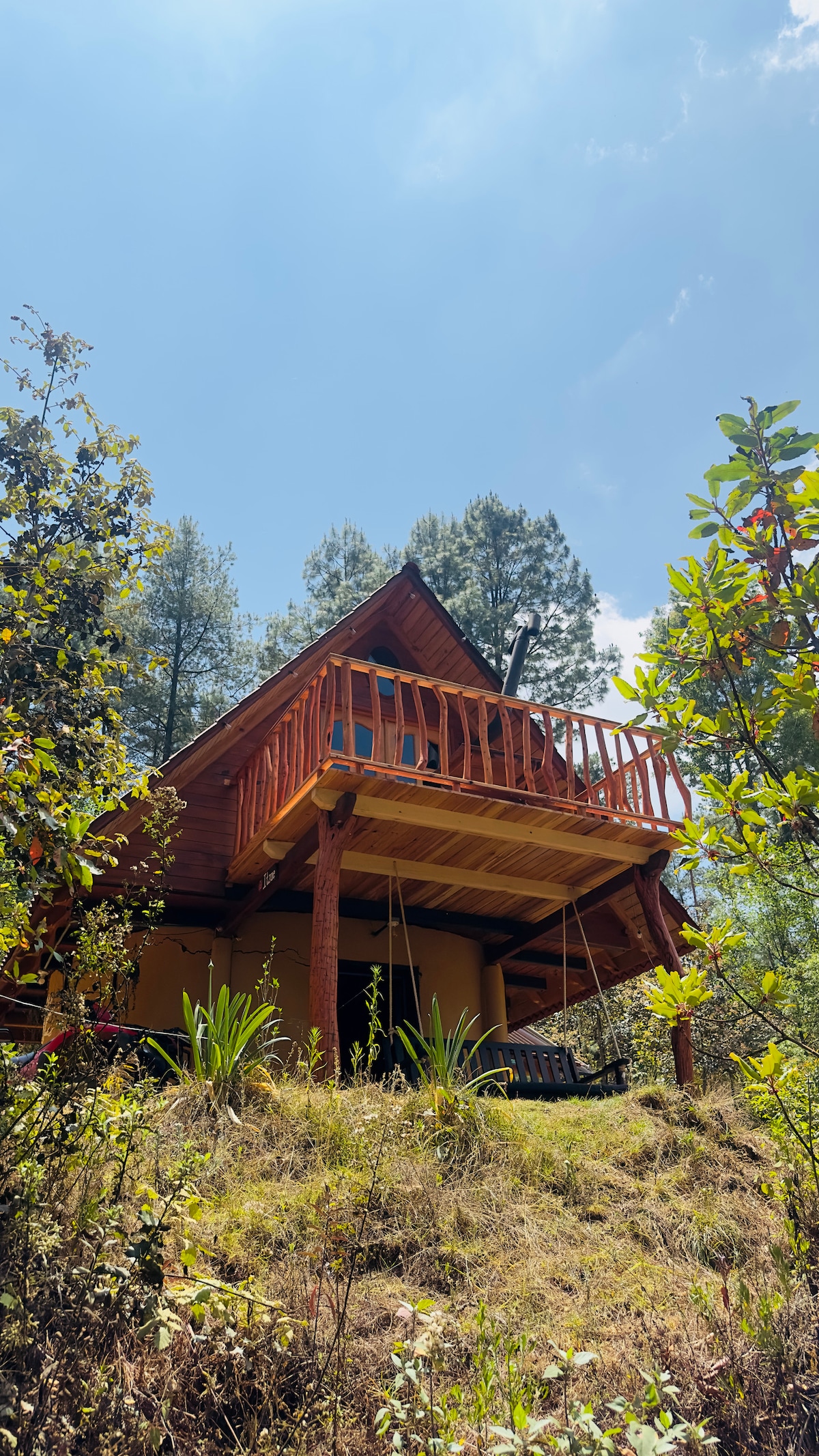 Casita redonda en forma de cúpula hecha de tierra (técnica del superadobe) situada en el bosque a 7 minutos en coche de San José del Pacífico. Consta de una cama matrimonial, chimenea y baño privado. Preciosas vistas a los valles, al amanecer y a la puesta del sol.