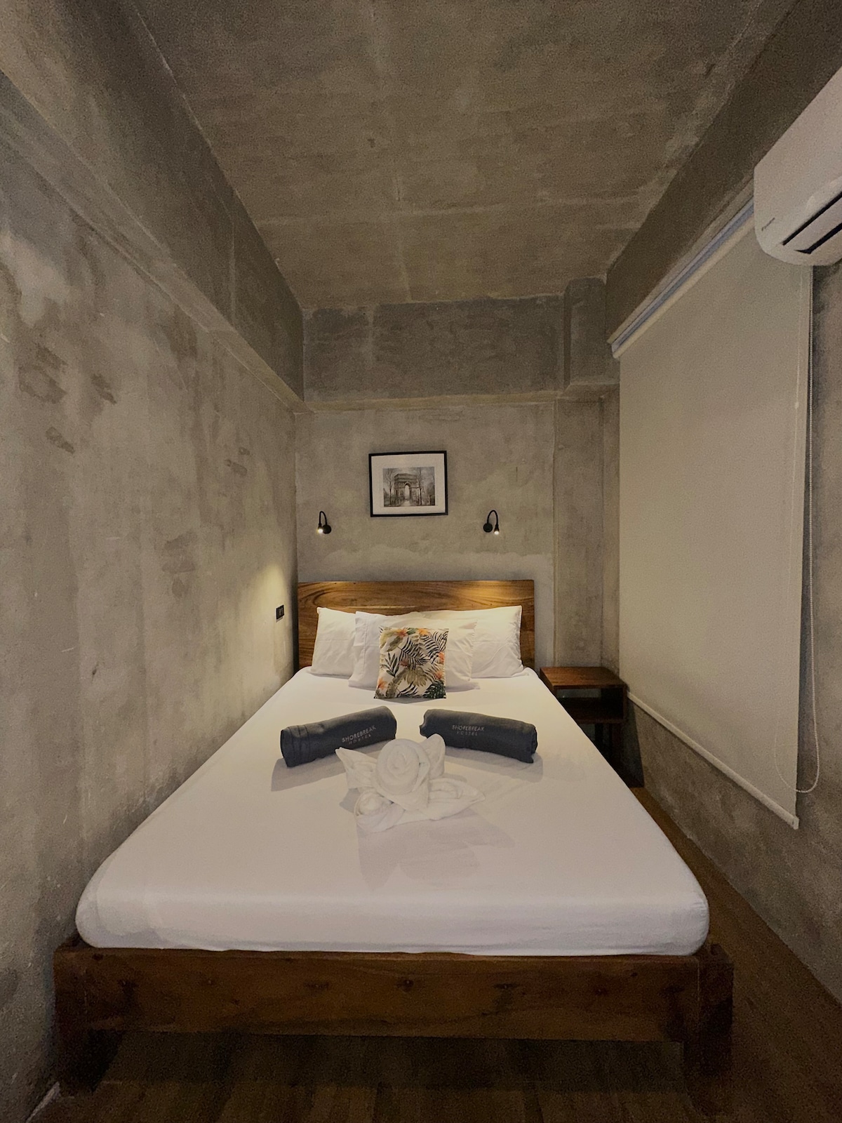 Perfecta para familias o grupos, nuestra habitación familiar ofrece espacio, comodidad y un diseño único con capacidad para 6 personas. Diseñada cuidadosamente con una litera hecha a medida, la habitación incluye dos camas tamaño queen y dos camas individuales, ideales tanto para adultos como para niños. Esta habitación tiene persianas enrollables, lámparas de noche, un escritorio con lámpara y una escalera para toallas. Viene con sábanas frescas, mantas, toallas esponjosas y un baño privado con ducha fría y caliente, bidé, agua filtrada y artículos de tocador de cortesía.