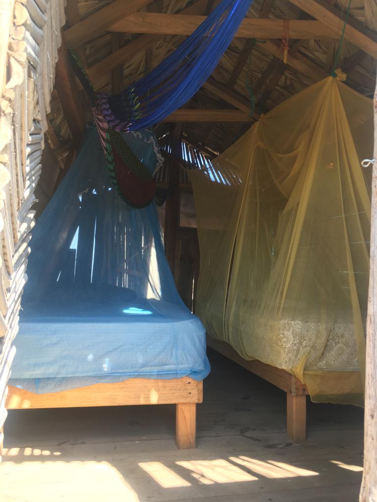 Cómoda recamara con aire acondicionado y ventilador de techo. El alojamiento no cuenta con agua caliente ya que esta zona es muy calurosa.