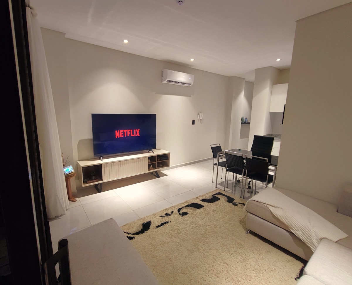 Departamento moderno a solo 5 cuadras de la Costanera de Encarnación. Ideal para descansar y disfrutar: ambiente climatizado, cama cómoda, WiFi rápido, cocina equipada. Zona segura, cerca de restaurantes, bares y el río.