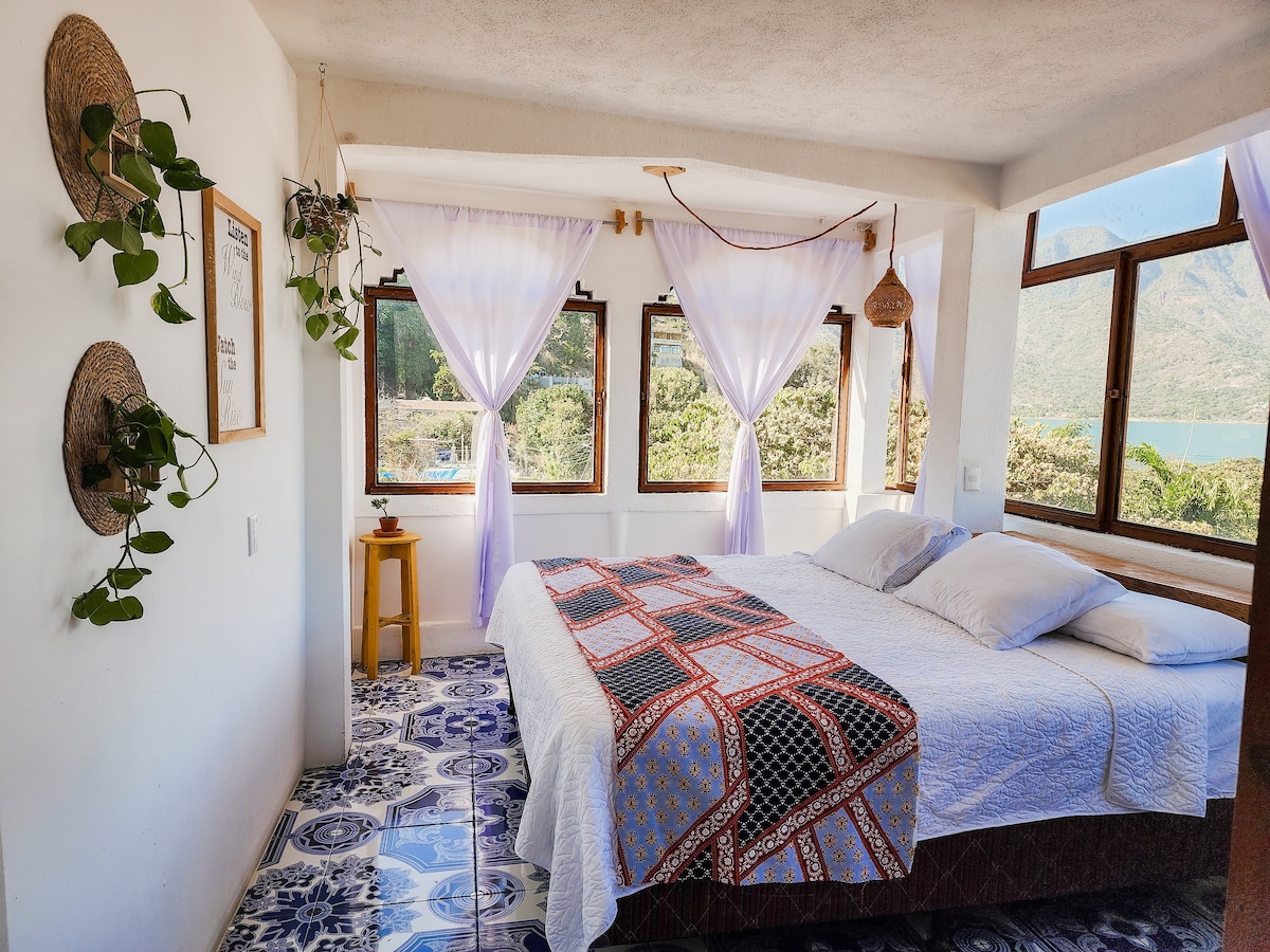 Contempla la belleza del Lago Atitlan y sus montañas mientras te relajas en un rincón acogedor junto a la ventana. Éste airbnb está situado en el centro de la zona turística por lo cual tendrás muchísimas opciones para disfrutar de buenos restaurantes, bares, vida nocturna, tiendas, servicios turísticos de recreación y exploración de la cultura local, transportes terrestres o lacustres para conocer los hermosos pueblos al rededor del Lago, eso y muchas cosas más...