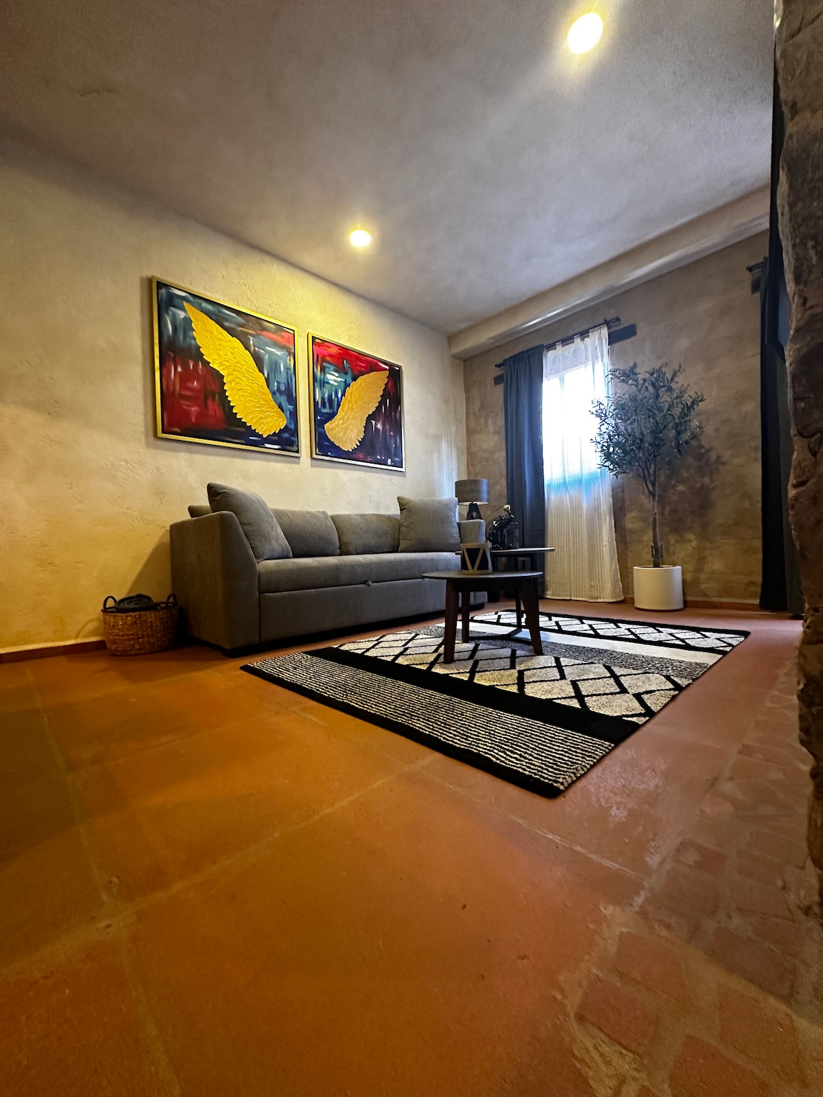 Este loft tiene una ubicación única: Se encuentra a solo 15 pasos de la plazuela principal donde se encuentran los mejores restaurantes de Val Quirico. Son 109 m2 divididos en 2 pisos. Planta baja cuenta con sala de t.v. con wifi cocina con barra. Planta alta recamara con cama king size, baño completo con vestidor y balcón. El sofá cama de la planta baja acomoda a un huésped (pueda causar tarifa adicional).