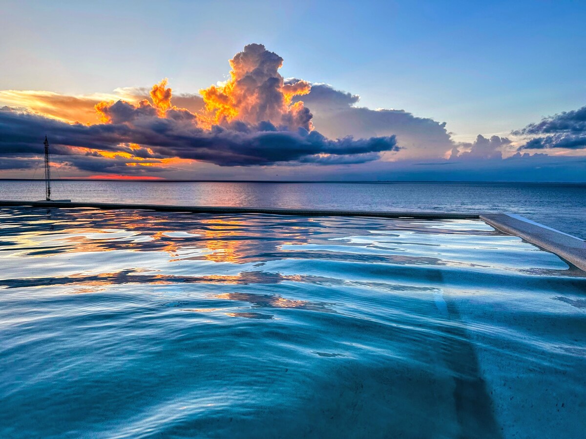 Relájate y disfruta de este espacio tan tranquilo y elegante en Cozumel, con dos piscinas, área de niños, salón de juegos, gimnasio, asador y estacionamiento. Perfecto para vacaciones en familia. Relájate en el rooftop con piscina infinity y jacuzzi con agua calientita, mientras contemplas los mejores atardeceres. Un lugar ideal para descansar, compartir y crear recuerdos inolvidables con todas las comodidades que necesitas.