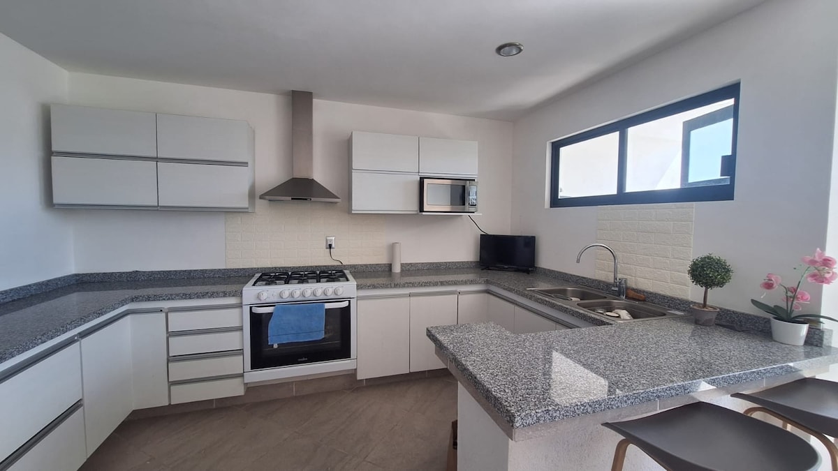 Excelente ubicación, rodeado de reserva ecológica, y ciclopistas, gran espacio, recién amueblado con todo lo necesario para 4 personas, buen servicio de Internet incluido, para una estancia de paseo o trabajo cómoda. A 4 minutos de zona industrial El Márquez junto a Universidad Politecnica UPQ.