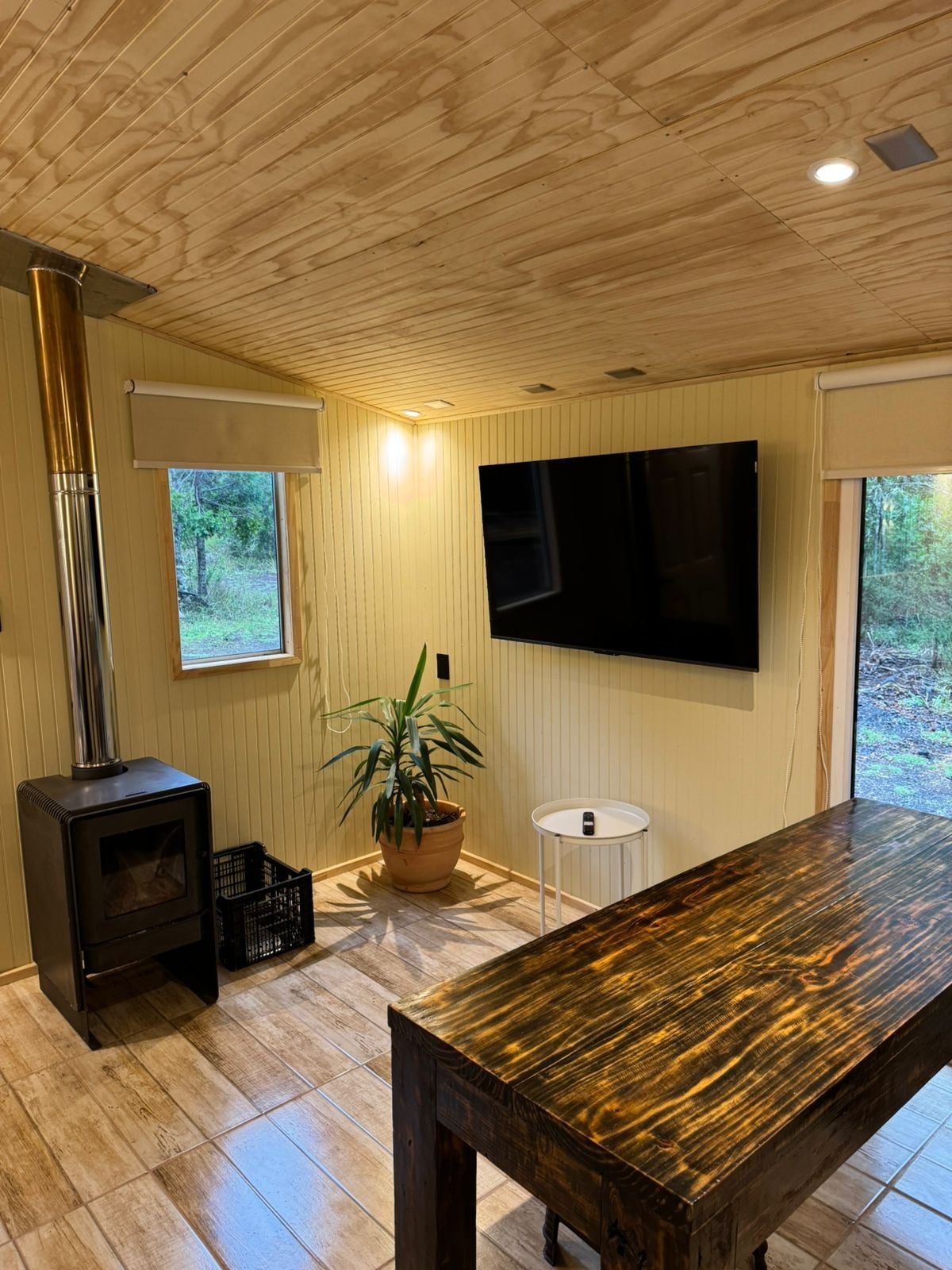 Sencilla y jovial tiny house para 3 personas (equipada con todo lo básico) en tranquilo lugar, ubicado a 17 km de Curacautín, cercano a diversos atractivos como Parque Nacional Conguillío, Laguna Negra, Salto del Captren, Termas Río Blanco, entre otros. Hay una escalera casi vertical para acceder a la habitación (peligroso para niños pequeños e incómodo para personas con movilidad reducida) Los 250 mts antes de la tiny house no son aptos para vehículos muy muy bajos.