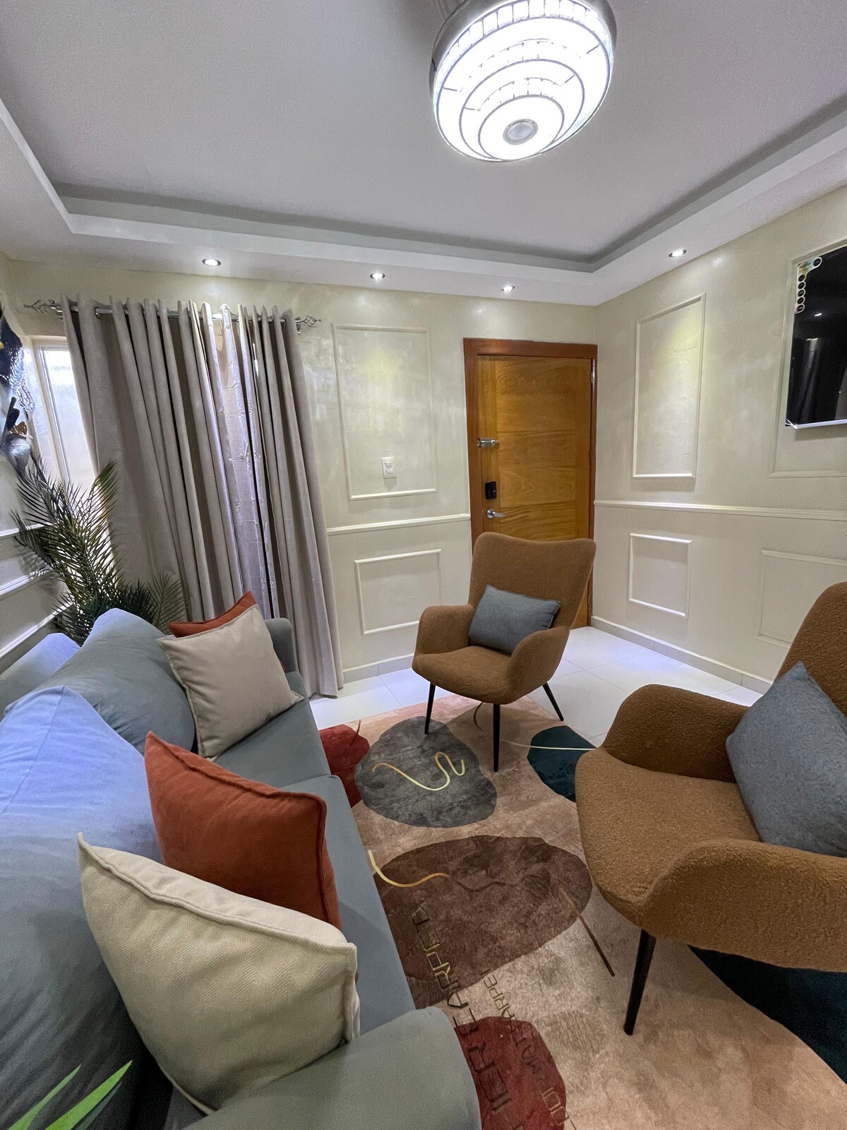 Vive la experiencia de un espacio moderno y céntrico, a solo dos calles del Estadio Tetelo Vargas y supermercados locales y a 15 minutos de las hermosas playas de Juan Dolio. El apartamento ofrece aire acondicionado tanto en la sala como en el dormitorio, que cuenta con una cómoda cama king size, mientras que la sala dispone de un sofá cama full. Además, disfrutarás de Wi-Fi, una cocina totalmente equipada y un área de lavado, diseñado para que tengas una estadía cómoda e inolvidable.