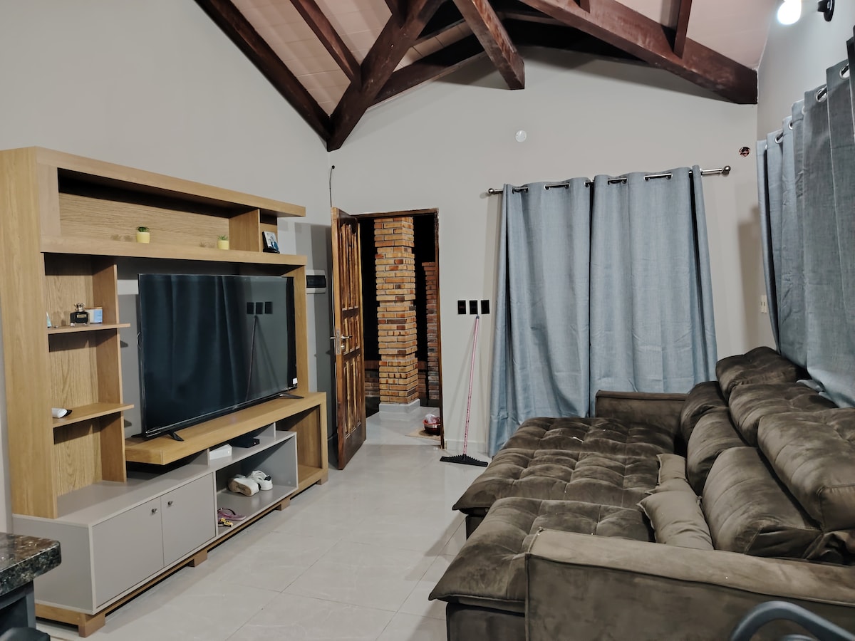 Bienvenidos a la Cabaña Ybycuí, un chalet totalmente independiente ubicada en la ciudad de Ybycuí, a 120 Km de Asunción; rodeada de naturaleza y vegetación, con una hermosa vista del cerro San José, a 50 mts. de la ruta Carapeguá - Acahay, de acceso súper fácil. Cuenta con todas las comodidades necesarias para que tengas una excelente estadía. A 7 min. de la cabaña se encuentra el Parque Nacional de Ybycuí con sus hermosos saltos y senderos ,el Museo la Rosada y mucha naturaleza para disfrutar!