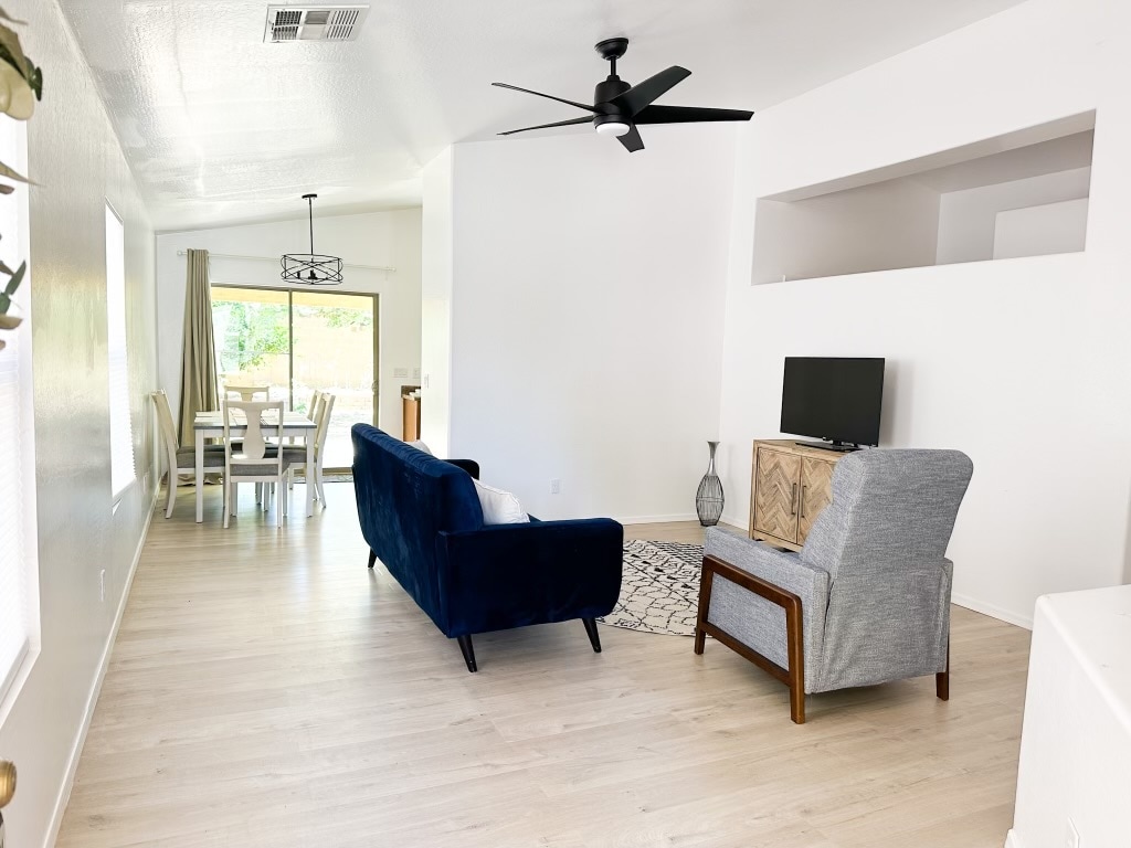 Siéntete como en casa en esta espaciosa casa de 3 dormitorios y 2 baños en San Tan Valley. El espacio de concepto abierto está lleno de luz con una gran cocina y sala de estar, perfecto para grupos de hasta 6 personas. La entrada con teclado facilita el registro. Al sureste del área metropolitana de Phoenix/Mesa, hay un acceso rápido a senderismo, golf, ciclismo... pero aún así lo suficientemente cerca para disfrutar de la gastronomía y las compras. Disfruta de los espacios abiertos del paisaje de Arizona mientras estás cerca de las atracciones urbanas.