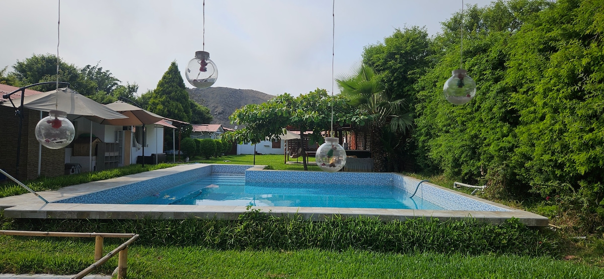 Ven con toda la familia o amigos a nuestra cálida casa de campo, es super amplia, con todo lo que necesitas para pasarla bien, alejado de la ciudad en medio de la tranquilidad de Asia campo. Podrás despertarte con el sonido de las aves, preparar pan en nuestro horno artesanal, disfrutar de un reponedor descanso en la terraza con vista al Valle de Asia o darte un refrescante chapuzón en la piscina, ¡la casa te sorprenderá de día y el atardecer te encantará! a 15 minutos del boulevard de Asia.