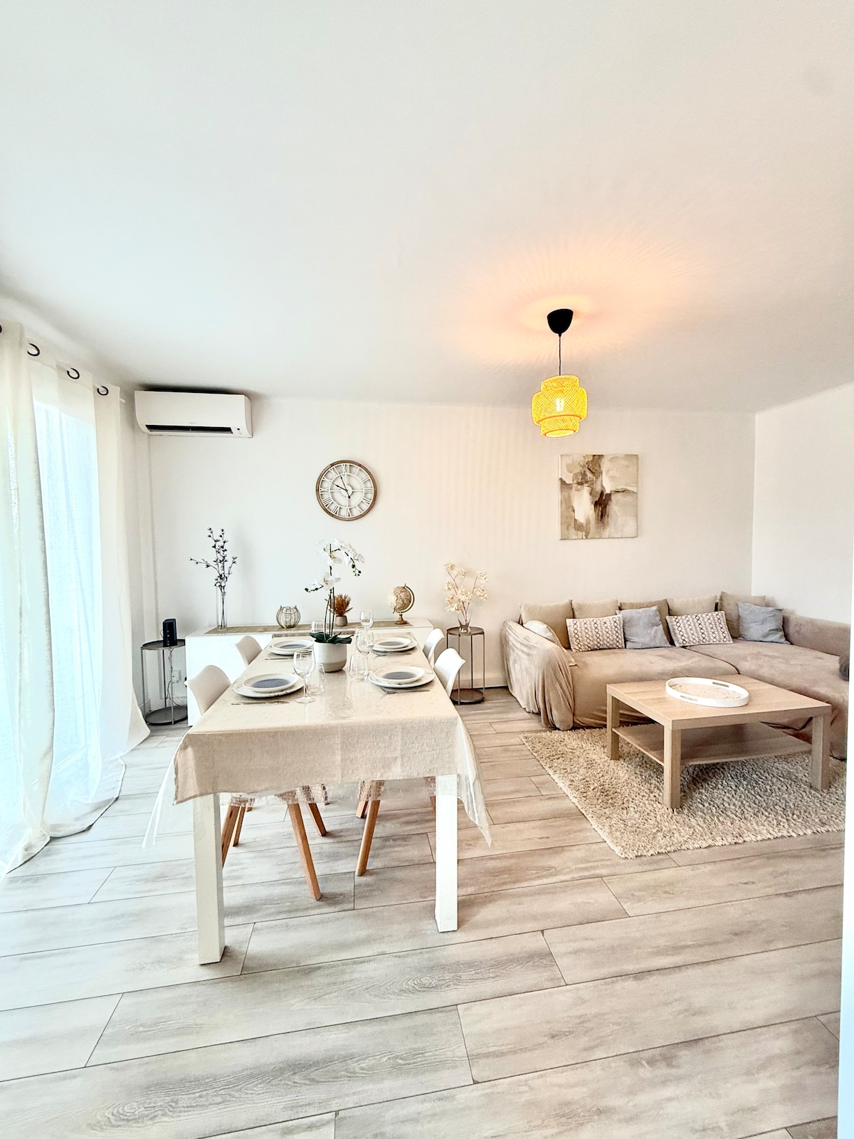 Bonito apartamento reformado y con aire acondicionado, en el segundo piso (sin ascensor) de una residencia arbolada con piscina. Convenientemente situado en Sanary-sur-Mer, entre la estación de tren (a 12 minutos a pie) y el puerto (a 15/20 minutos a pie). Residencia segura. Una plaza de aparcamiento está disponible de forma gratuita. Podrá venir a alojarse en pareja, en familia, con amigos o en sus viajes de negocios. El acceso a la autopista se encuentra a solo 2 minutos en coche.