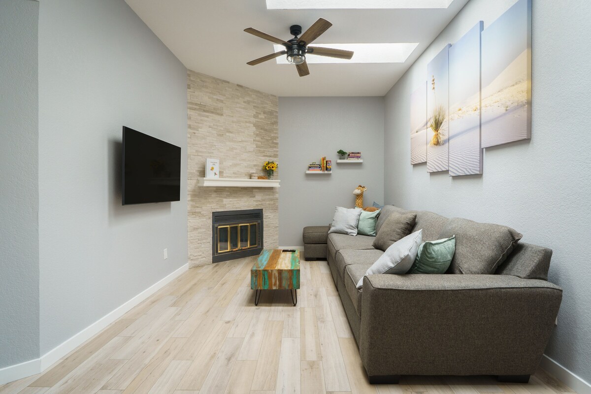 Esta encantadora casita del suroeste es perfecta para parejas, viajeros solitarios/de negocios y familias pequeñas. El plano de planta abierto ofrece un lugar ideal para que familiares y amigos se relajen mientras visitan Albuquerque y las ciudades cercanas. Convenientemente ubicado en una exclusiva zona de NE Heights, un fácil trayecto en coche te llevará a la interestatal y a los alrededores de la ciudad en minutos. ¡Hermosas vistas de las montañas y de la ciudad te mantendrán volviendo a visitar este increíble lugar!