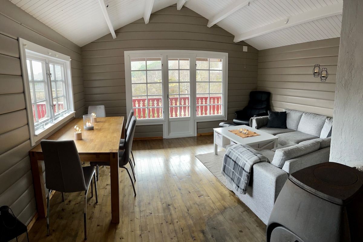 Moderna casa de campo en medio del mar con una vista fantástica. Aquí encontrarás el centro vacacional perfecto donde puedes relajarte y disfrutar de la vista del mar y las majestuosas montañas y puedes pescar en tu propia cena sin salir de la cabaña. Excelentes oportunidades de pesca y senderismo. Tienda y cafetería 24/7 en las inmediaciones y el famoso restaurante Kvitnes Gård está a solo 8 minutos en auto.