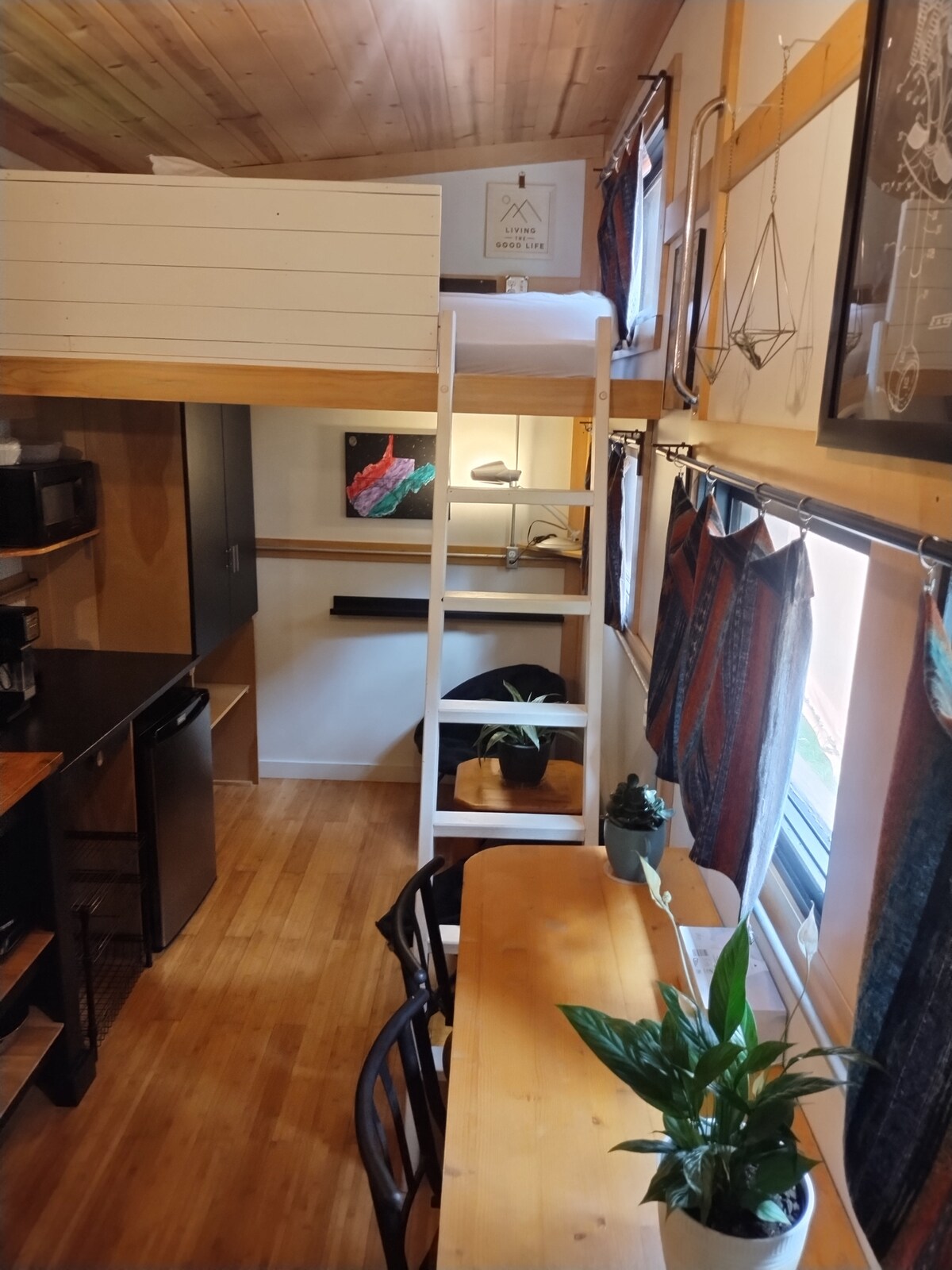 ¡Ven a explorar esta pequeña casa temática de escalada en New River Gorge, con fácil acceso a Fayetteville! A 1 minuto en coche o a 15 minutos a pie de la ciudad. Este espacio bien planificado ofrece todo lo que necesitas para apoyar tus aventuras en New River Gorge mientras mantienes una huella pequeña pero lujosa. Este lugar inolvidable es de todo menos ordinario. Ponte cómodo con un súper aislamiento, ventilación y una acogedora bomba de calor. Acurrúcate en el loft sobre un colchón de espuma viscoelástica. Disfruta de los pisos de bambú y la energía solar.