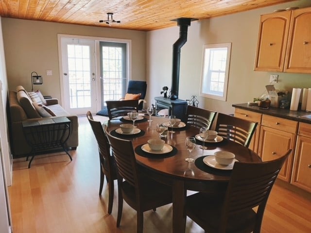 Escápate y disfruta de un alojamiento tranquilo y privado, y de un desayuno único que podrás preparar tú mismo, cuidadosamente planeado por tu anfitrión. Disfruta de tu propio terreno de 1/3 de acre. Empieza la mañana con café en la terraza y termina la noche con vino junto al fuego. ¿Noche fría? Disfruta del jacuzzi al aire libre o acércate a una chimenea interior. Ubicado a solo 6 minutos del centro de Wasagaming, donde podrás disfrutar de tiendas, restaurantes, senderos, playas y patinaje, así como del nuevo Klar So Nordic Spa. ¡Reserva tu escapada hoy mismo!