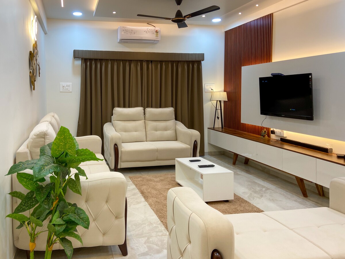 Moderno piso superior amueblado 1BHK en Balajinagar, Sangli, cerca de Kupwad y Miraj MIDC. Sala de estar luminosa con gran ventana de vidrio y vistas abiertas, televisor inteligente de 55 pulgadas, wifi de alta velocidad y sofá cama. Cocina modular totalmente equipada, lavadora, dormitorio con aire acondicionado y escritorio, agua caliente y estacionamiento. Ideal para estancias corporativas, parejas y familias pequeñas. Acceso sin restricción de horario disponible.