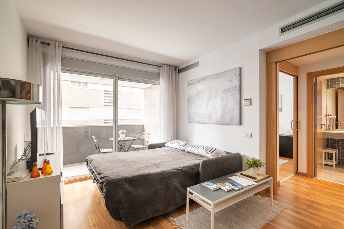 Private parking slot included in the price in the same building. 20' by Tramway to city center ! We use 'Vikey' for mandatory guests registration for guests over 14 years old . Very closed to CCIB - Port Forum - Beach - Diagonal Mar shopping centre. Supermarket at 100 mts open from 8 to 23 (7 days a week) Brand new sunny 1 room apartment ideal for 2 but up to 4 people Swimming pool in the groundfloor (water is *not* heated) Beach at 400mts. CCIB and Diagonal Mar mall at 800 mts