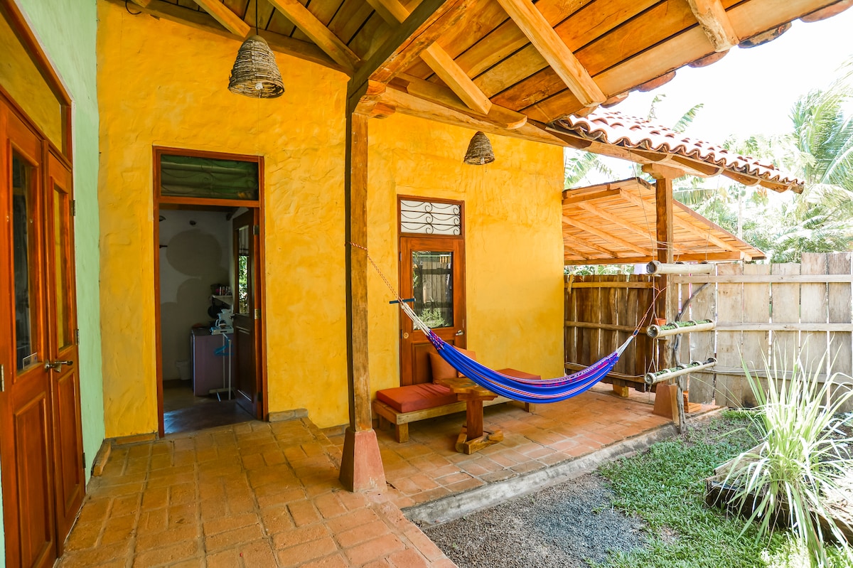 Cozy, modern house with 3 apartments in a quiet area, only 3 min walking to the main beach, which is great for surfing and enjoying some beach time. Each apartment has a separate bedroom, bathroom, fully equipped kitchen and hammocks to chill outside. In this apartment there is the option for a 3rd person to sleep on a sofa bed. Please let us know in advance if you need the sofa prepared as a bed.