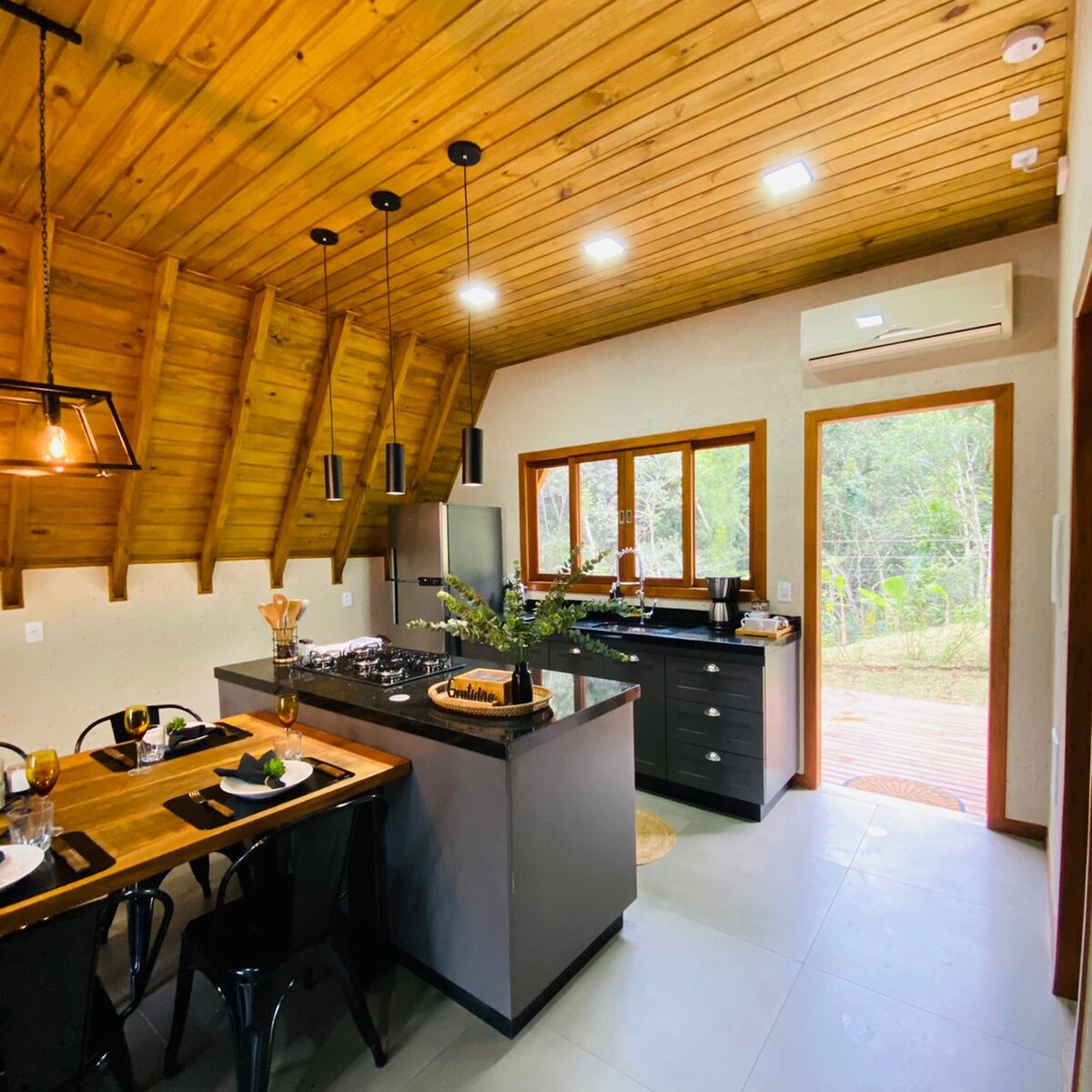 CHALÉ BOSQUE DE BRAVA Horarios extendidos y flexibles: ♡ Check-in: a partir de las 8:00 ♡ Check-out: hasta las 18:00 ¡Romántico, acogedor y privado! Equipado, rústico y con estilo alpino, ¡para momentos inolvidables! Ideal para parejas, pero también tiene capacidad para 3 personas. Fácil acceso, seguro y con garaje cubierto. Ubicación privilegiada, a 1.200 metros de 3 hermosas playas: Brava, Ponta das Canas y Lagoinha do Norte.