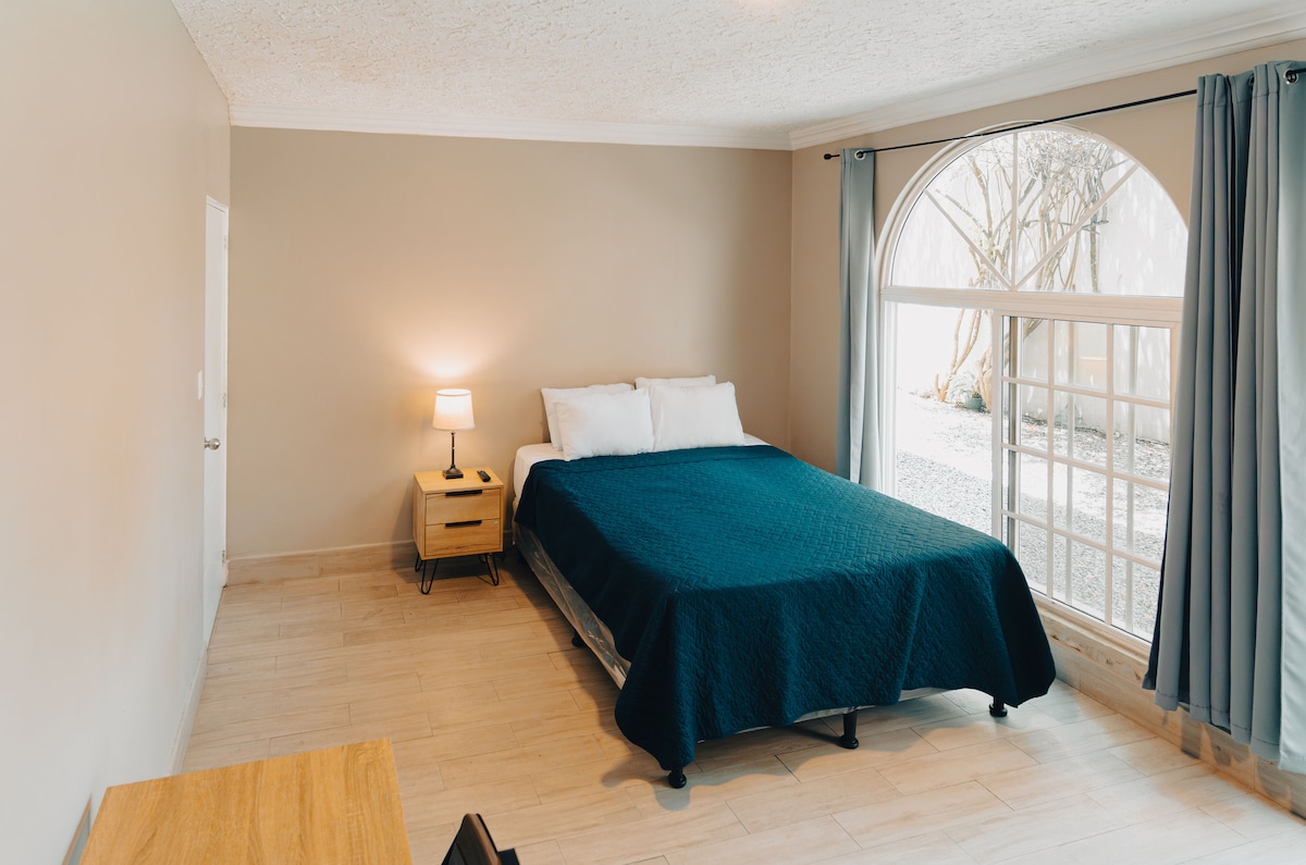 Disfruta de este alojamiento tranquilo y céntrico en esta comodísima habitación frente a lindo parque ecológico en una de las áreas más tranquilas, seguras y con mayor naturaleza de la Ciudad de Guatemala en Colonia Oakland Zona 10. Cerca de tiendas, supermercados, centros comerciales, cajeros, restaurantes y muchísimo más. Espacio ideal para descansar tanto en estadías largas como estadías cortas. ¡Bienvenid@ desde ya!