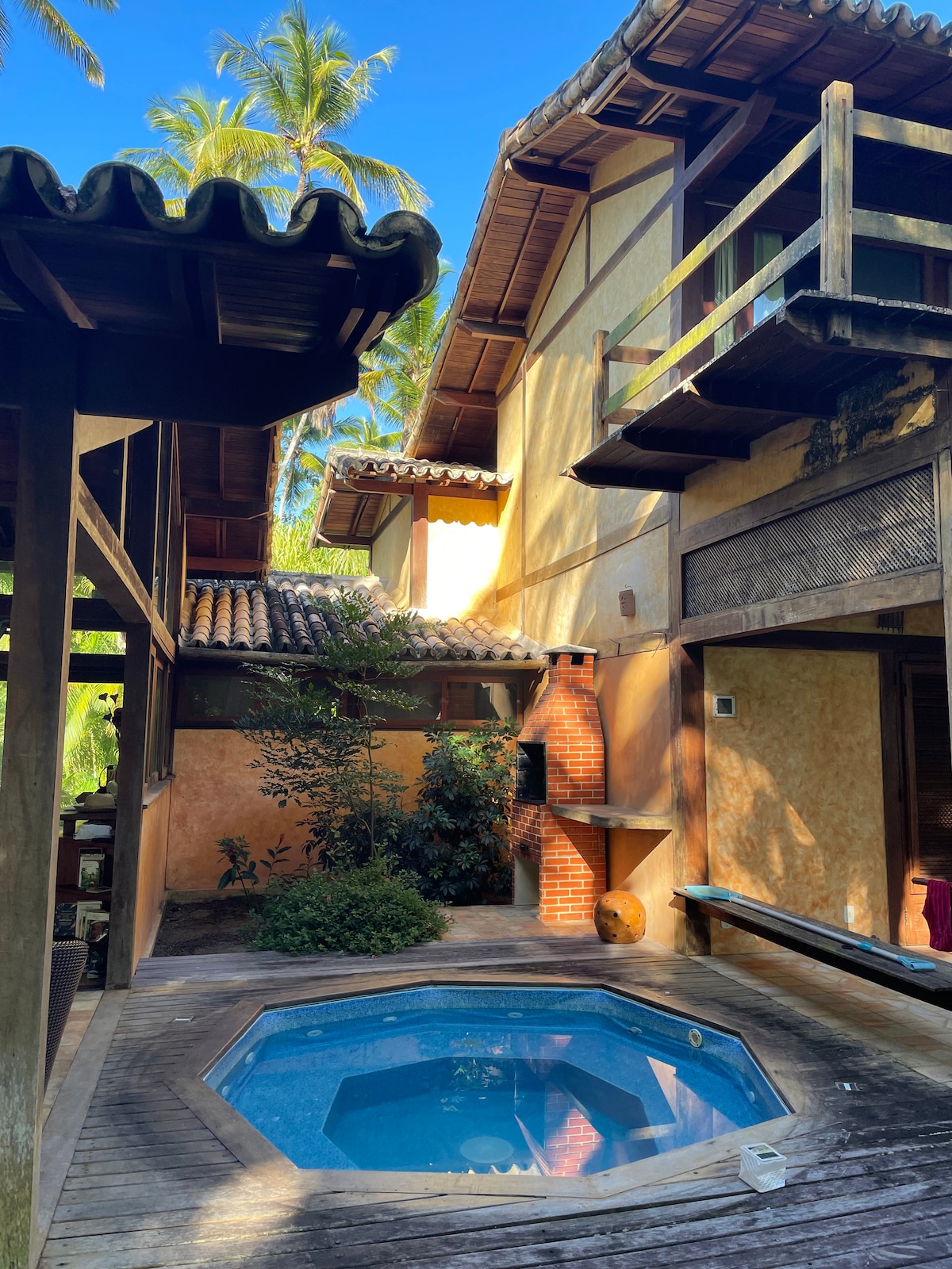 Preciosa villa de arquitecto de 250m2 + terraza de 100m2, en un condominio privado a 50m de Praia Guaiu, una de las playas más bonitas de Bahia. Definitivamente una de las casas más bonitas, bien pensadas y bien pensadas de la región. Tiene capacidad para 3 familias con adultos y niños (4 dormitorios con cama matrimonial y 1 dormitorio con 3 camas individuales y colchones adicionales).