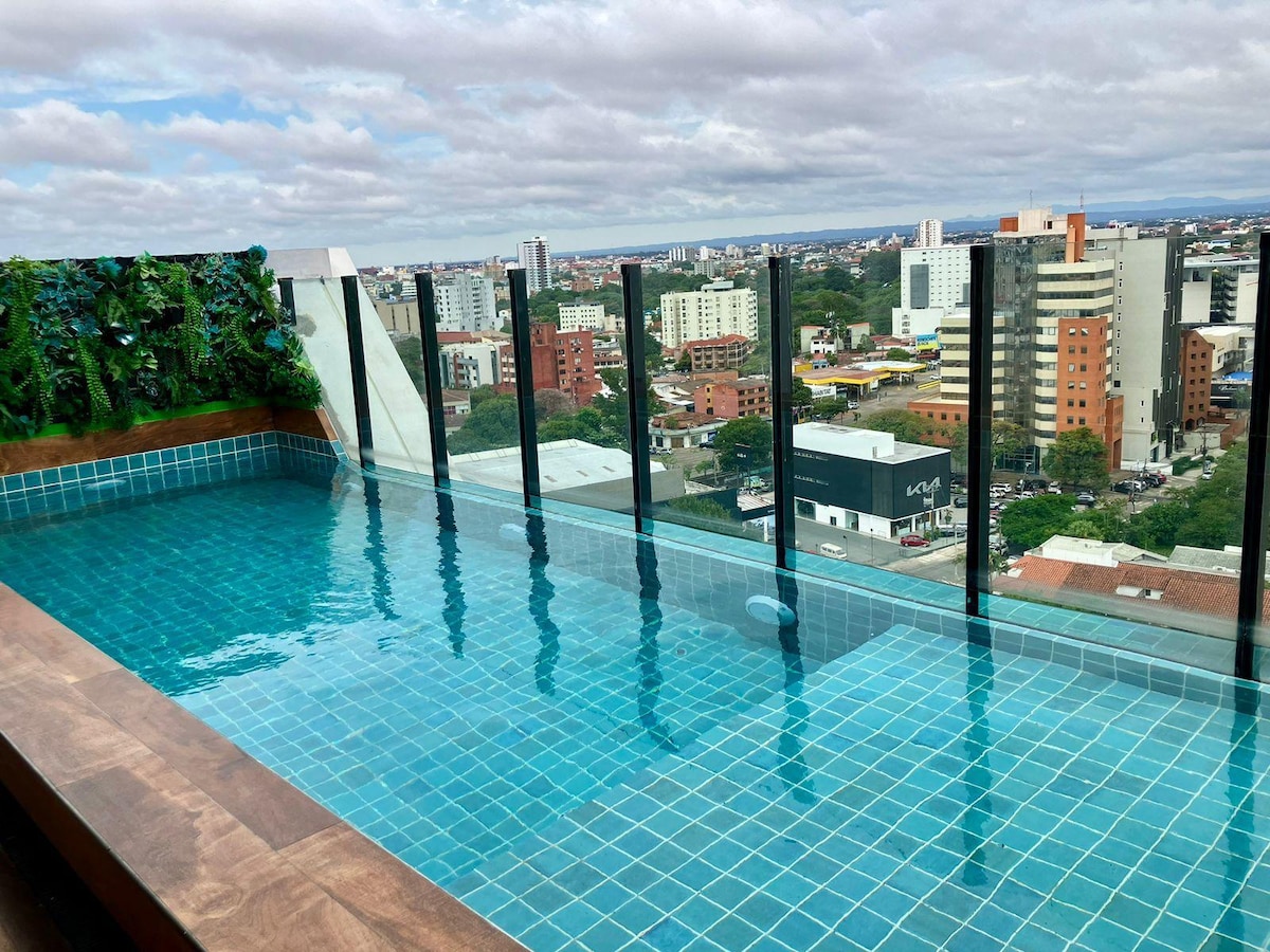 Un espacio acogedor, nuevo y único, ubicado en la mejor zona de la ciudad de Santa Cruz de la Sierra, con una vista incomparable de la ciudad, excelente ubicación, y con acceso a una serie de espacios comerciales y turísticos. Además cuenta con todas las comodidades necesarias: servicios de streaming gratuitos, piscina, parrillero, área de juegos y sala de co-work.