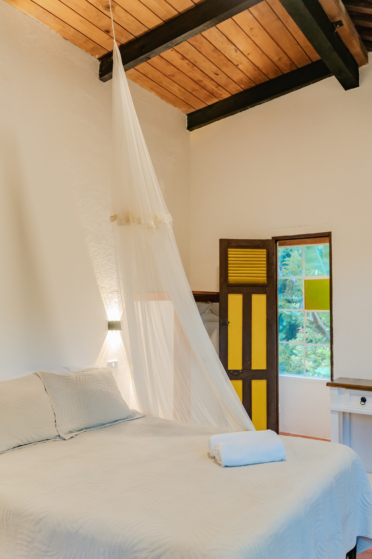*Nota: Los precios se reducen debido a la construcción en el lugar.* Alójate en nuestra casita moderna de un dormitorio en la selva con balcones envolventes e impresionantes vistas al lago. Las características incluyen ventanas plegables del piso al techo, una cocina completa con encimeras de granito, bañera, agua calentada con gas y filtrada, internet Starlink y un sofá cama para los huéspedes. Disfruta de la shala de yoga en la azotea, los exuberantes jardines, la energía solar, el agua privada y una propiedad cerrada segura, a pocos pasos del lago y la reserva natural.
