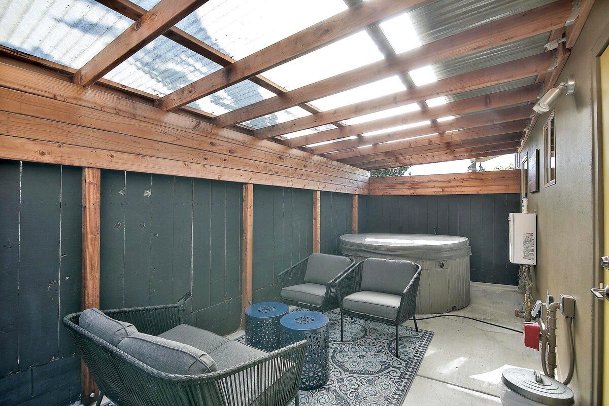 De nuestra familia de amantes de la playa a la tuya: bienvenido a nuestro santuario costero recién remodelado en el tranquilo Westside inferior de Santa Cruz. Pasea 5 minutos hasta Natural Bridges Beach durante el día. Por la noche, observa las estrellas desde el jacuzzi o reúnete alrededor de la fogata de gas. La vida silvestre abunda: desde nuestros colibríes y mariposas residentes en casa hasta avistamientos ocasionales de focas, nutrias y ballenas en Natural Bridges. ¿Tienes hambre o sed? ¡Pasea 10 minutos hasta el corazón de la escena cervecera, vinícola y gastronómica de Santa Cruz!