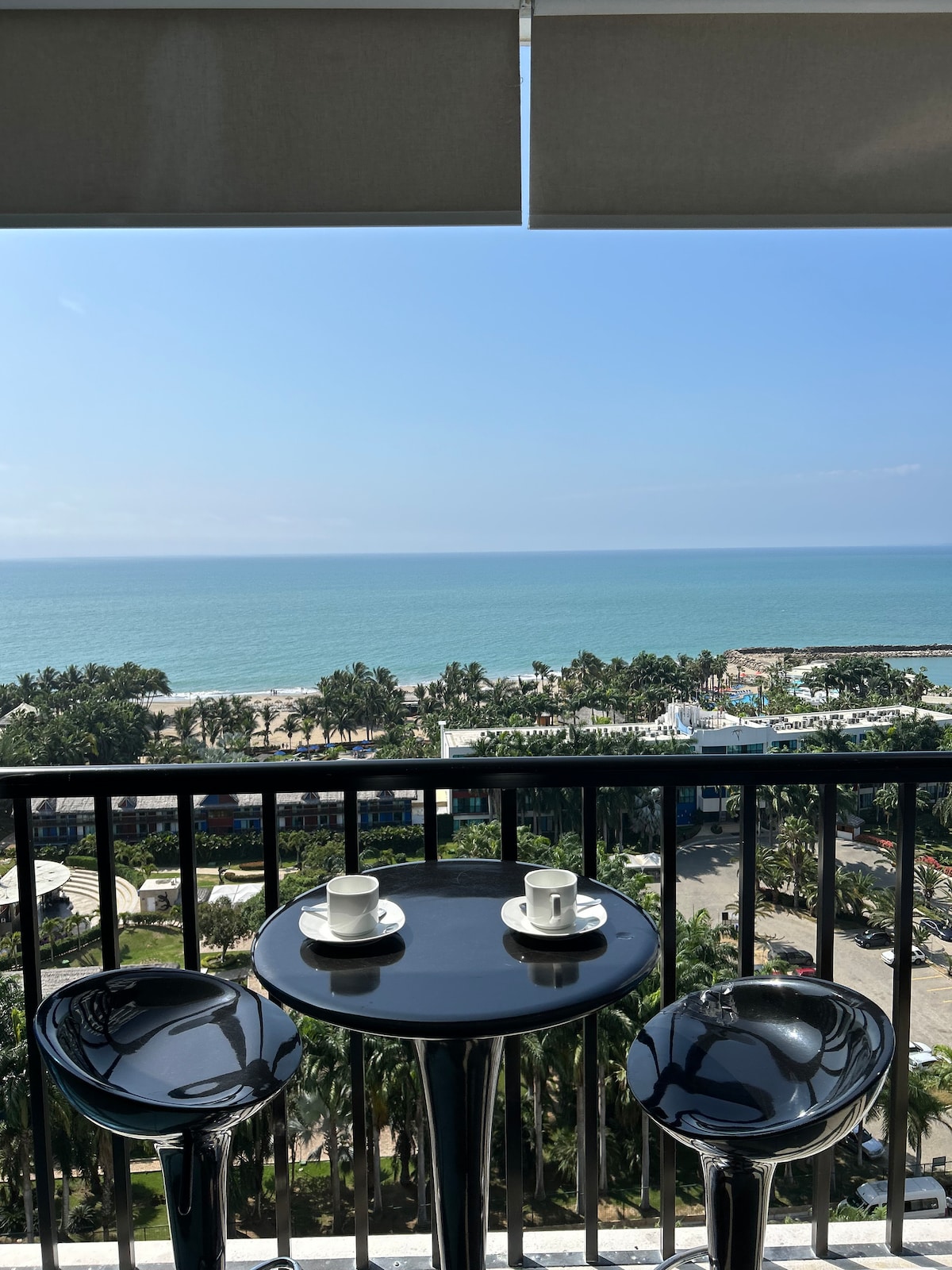 Frente al mar con seguridad 24h en la urbanización, playa y parqueo. Acorde con el sonido del mar, tome café con la brisa entrando por la ventana y sienta que el tiempo paró ♥ ⭐Incluye: • 3m caminando a playa • Parqueo y vistas 360° • WiFi 600Mb • Piscinas, jacuzzi y zona BBQ • Cuartos con A/C, agua caliente y cortinas • TV: Netflix, Spotify & Alexa • Airfryer, cafetera, micro, refri y cocina • 3 baños, cuna, Petfriendly, ascensor • Toallas, ropa de cama y papel • Guardias, y cámaras 24h