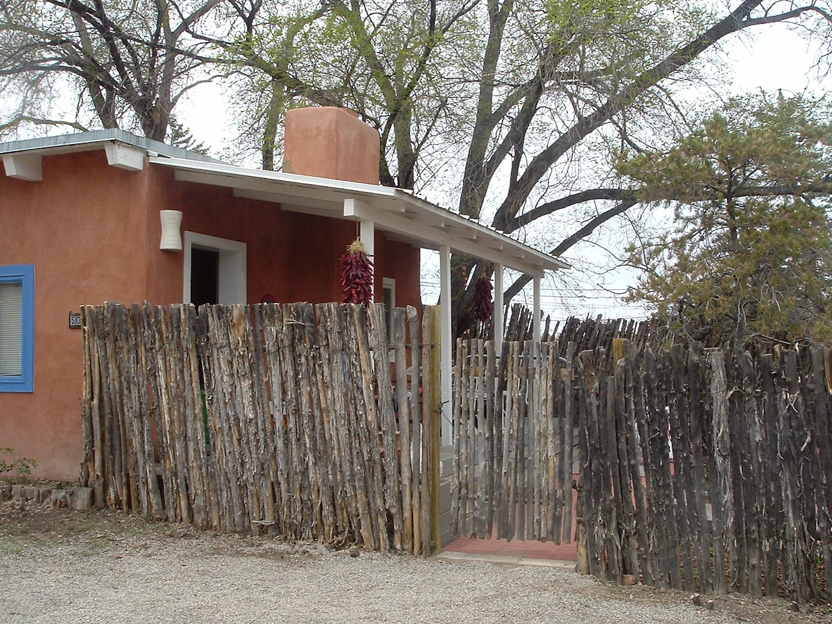Stunning Casita walking distance to Santa Fe Plaza. Near Georgia O'Keeffe gallery with many restaurants, cafes + galleries nearby. One bedroom with a king size bed and fold out queen sofa along with a beautiful walled in patio, kiva fireplace, fully equipped kitchen with high end appliances as well as washer and dryer. Pets allowed with advance notice and additional cleaning fees. Two off street parking spots along with all linens supplied as well as soaps, hair dryer, all necessities.