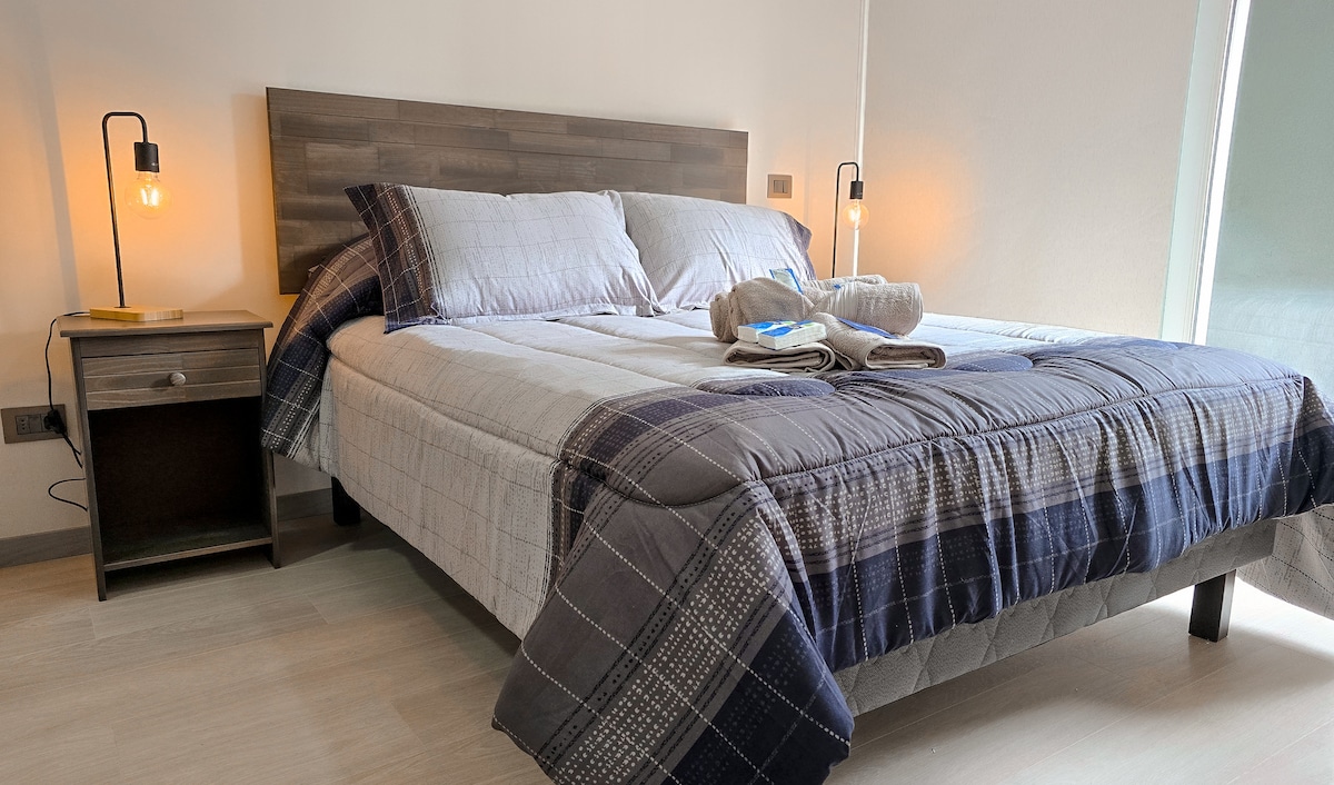 Encanto con cama king, terraza, wifi y AC