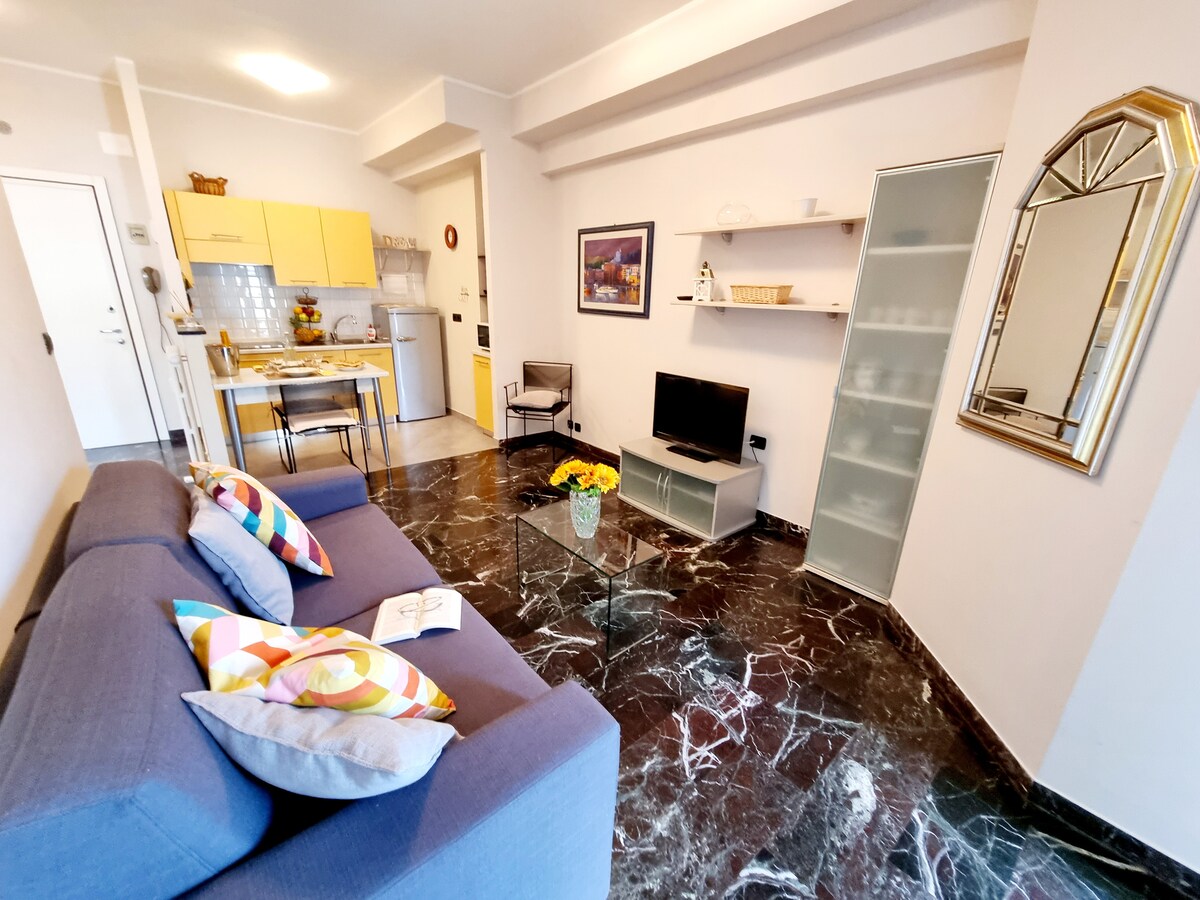Apartamento situado en el primer piso, finamente amueblado, a un minuto del mar y del centro de Santa Margherita Ligure. Hay dos dormitorios, uno con cama doble, otro con una cama individual, desde la entrada tenemos la sala de estar con sofá cama disponible y cocina completa con cocina de gas, horno, utensilios de cocina, nevera y congelador, vasos, cubiertos y ¡«prosecco» de bienvenida! También hay una pequeña lavandería con lavadora y un baño con ducha.