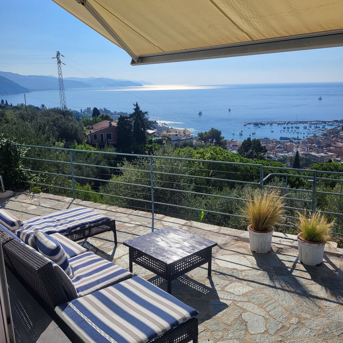 La casa es totalmente independiente, está rodeada de verde olivar de Liguria y ofrece unas vistas impresionantes del Golfo Paradiso. El panorama que se puede disfrutar desde las terrazas y ventanas se abre desde el extremo occidental de Liguria hasta el Monte de Portofino y, en los días despejados, hasta el archipiélago toscano y Córcega. El mar (500 m.) Recco (1200 m) y el Parque Nacional de Portofino (3 km) son accesibles en coche y a pie, con paseos panorámicos; Génova-Nervi está a 12 km (SS1 Aurelia)