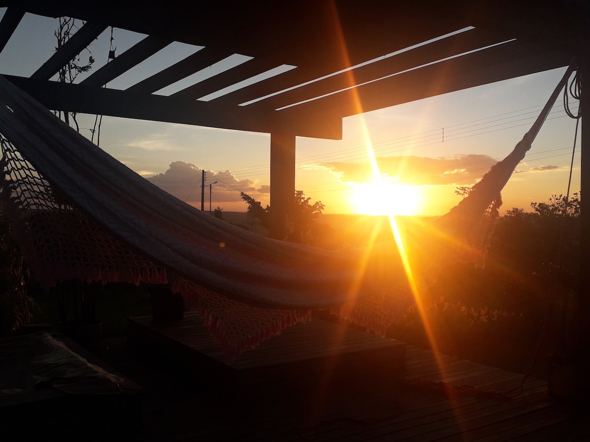 Casita de huéspedes, acogedora y aislada de la casa principal, a unos 25 minutos de Plano Piloto. Lugar ideal para la tranquilidad y el contacto con la naturaleza. No condomínio há uma área de mata preservada, com trilha e cachoeira, a 10 minutos da casinha. Una acogedora casa de huéspedes, ubicada en la misma propiedad, pero apartada en el bosque, a unos 25 minutos del «Plano Piloto». Además, hay un sendero y una cascada en el condominio a unos 10 minutos de la «casinha».